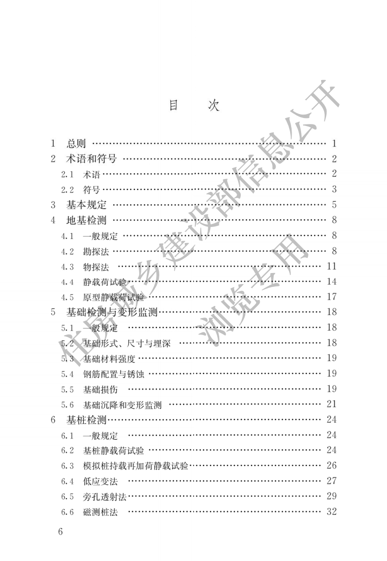 前言根据住房和城乡建设部《关于印发〈2015年丕程建设标准规范制定、修订计划〉的通知》(建标[2014☑189号)的要求,标准编制组经广泛调查研究,认真总结实践经验,参考有关国际标准和国外先进标准,并在广泛征求意见的基础上,编制本标准。本标准的主要技术内容是:1总则;2.术语和符号;3.基本规定;4.地基检测;5.基础检测与变形监测;6.基桩检测;7.周边环境影响检测与监测本标准由住房和城乡建设部负责管理,由河北省建筑科学研究院负责具体技术内容的解释。执行过程中如有意见或建议,请寄送河北省建筑科学研究院(地址:石家庄市槐中路244号,邮编:05002少。本标准主编单位:河北省建筑科学研究院大元建业集团股份有限公司本标准参编单位:国家建筑工程质量监督检验中心建研地基基础有限责任公司中国科学院武汉岩土力学研究所河北省建筑工程质量检测中心福建省建筑科学研究院广西壮族自治区建筑工程质量检测中心河北省电力勘测设计研究院山东省建筑科学研究院四川省建筑工程质量检测中心广东省建筑科学研究院4