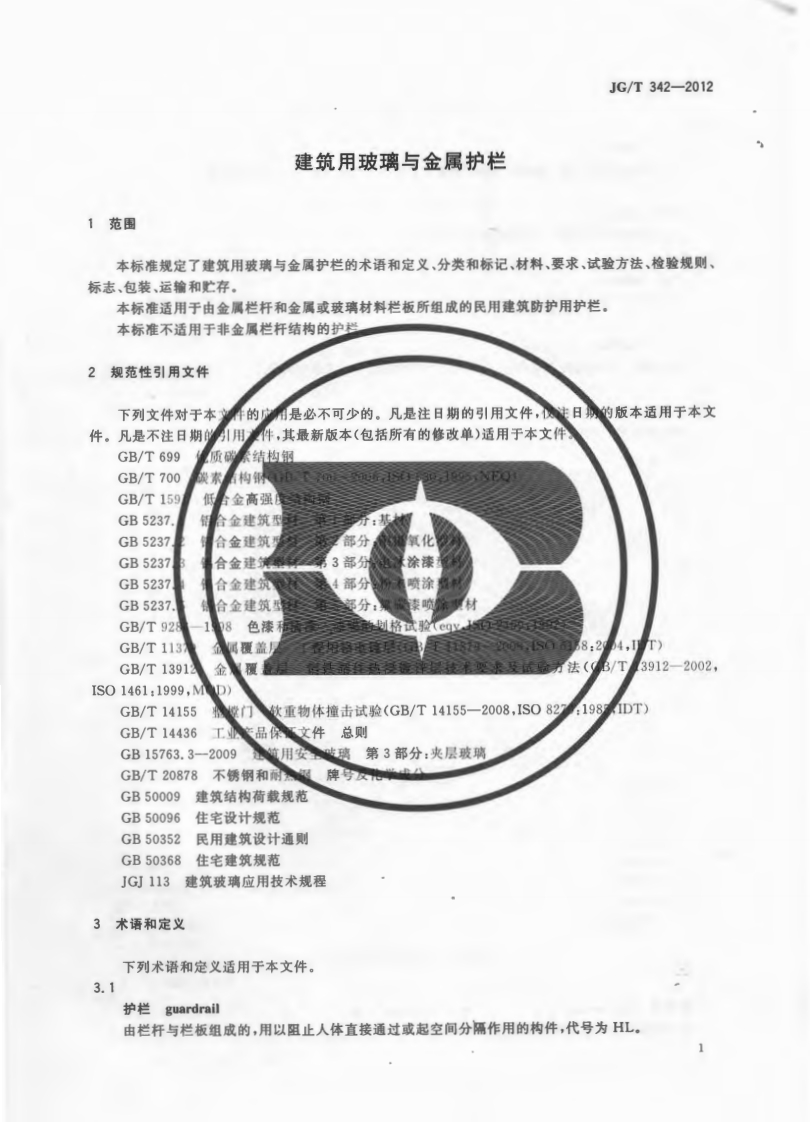JGT342-2012348072@abc16天前发布关注私信1.22MB26页047JGT342-2012此内容为付费资源,请付费后查看¥23¥36黄金会员免费钻石会员免费立即购买您当前未登录!建议登陆后购买,可保存购买订单付费资源 第1页 / 共26页 第2页 / 共26页 第3页 / 共26页 第4页 / 共26页 第5页 / 共26页 试读已结束,还剩21页,您可下载完整版后进行离线阅读 THE END标准规范 文本预览 1CS91.060.30P32JG中华人民共和国建筑工业行业标准JG/T342一2012建筑用玻璃与金属护栏Glass and metal guardrail for building(JISA6601-2004,NEQ2012-02-29发布2012-08-01实施中华人民共和国住房和城乡建设部发布 查看更多 收起部分 喜欢就支持一下吧收藏