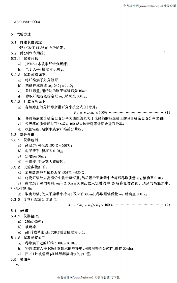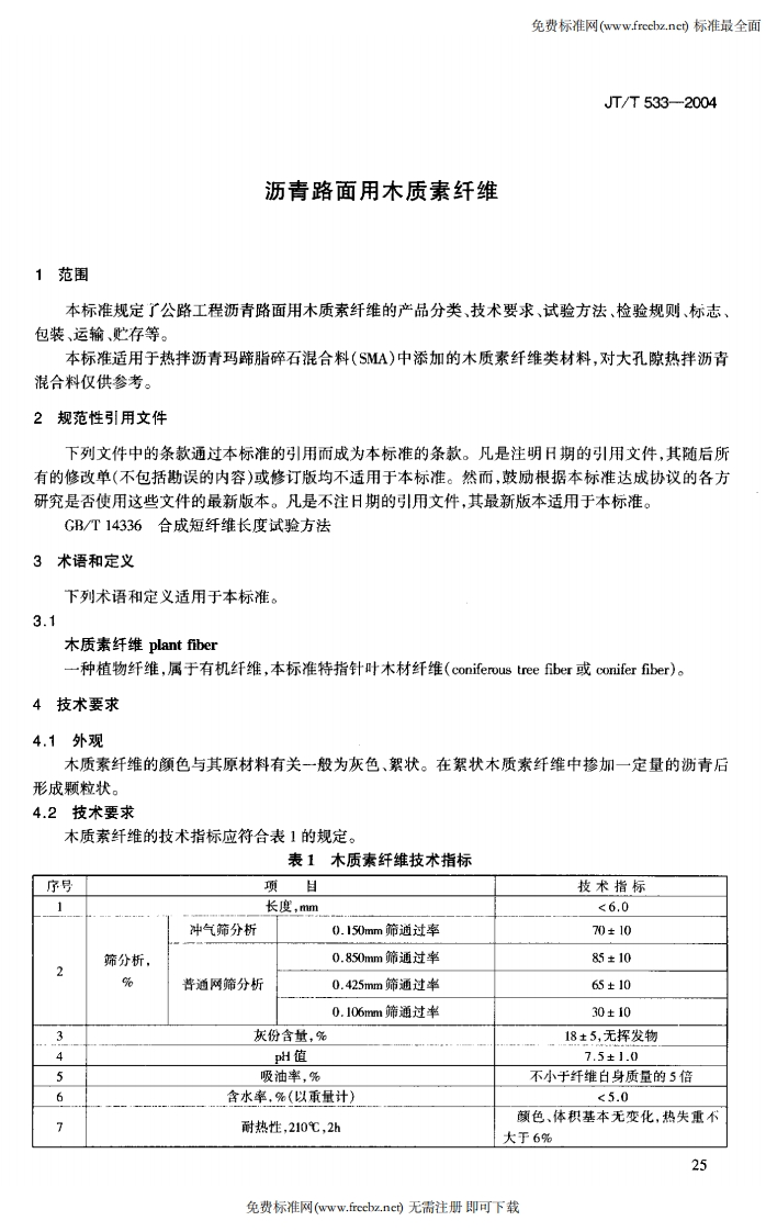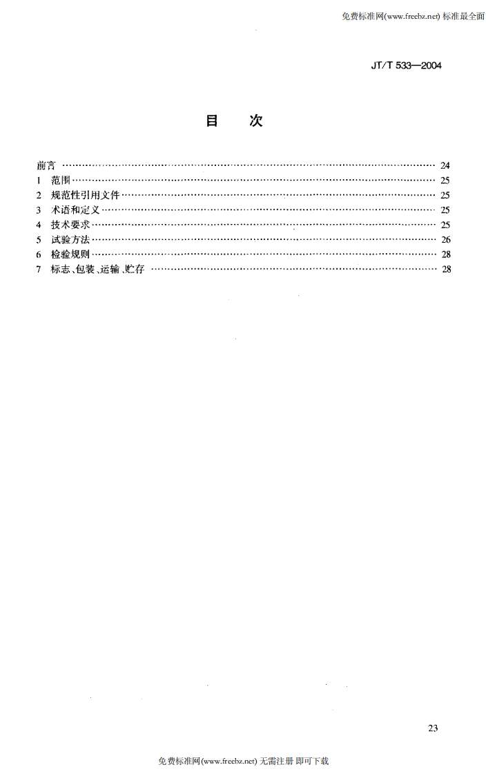 JT-T-533-2004348072@abc16天前发布关注私信0.43MB7页023JT-T-533-2004此内容为付费资源,请付费后查看¥23¥36黄金会员免费钻石会员免费立即购买您当前未登录!建议登陆后购买,可保存购买订单付费资源 第1页 / 共7页 第2页 / 共7页 第3页 / 共7页 第4页 / 共7页 第5页 / 共7页 试读已结束,还剩2页,您可下载完整版后进行离线阅读 THE END标准规范 文本预览 免费标准网(www.frccbz.nct)标准最全面P66备案号:中华人民共和国交通行业标准JT/T533-2004沥青路面用木质素纤维Plant fibers used in asphalt pavements2004-08-17发布2004-12-01实施中华人民共和国交通部发布免费标准网(www.frcebz.nc)无需注册即可下载 查看更多 收起部分 喜欢就支持一下吧收藏