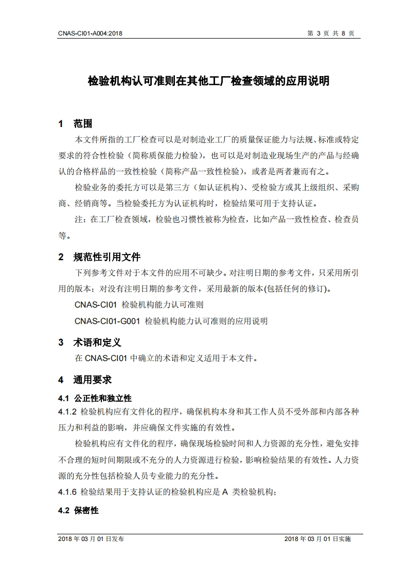 OASCNAS-CI01-A004检验机构能力认可准则在其他工厂检查领域的应用说明_CNAS-CI01-A004检验机构能力认可准则在其他工厂检查领域的应用说明uidanceontheApplicationofinspectionBodympetenceAccreditationCriteriaintheFieldofGeneralFactoryinspection348072@abc16天前发布关注私信0.20MB9页040OASCNAS-CI01-A004检验机构能力认可准则在其他工厂检查领域的应用说明_CNAS-CI01-A004检验机构能力认可准则在其他工厂检查领域的应用说明uidanceontheApplicationofinspectionBodympetenceAccreditationCriteriaintheFieldofGeneralFactoryinspection此内容为付费资源,请付费后查看¥23¥36黄金会员免费钻石会员免费立即购买您当前未登录!建议登陆后购买,可保存购买订单付费资源 第1页 / 共9页 第2页 / 共9页 第3页 / 共9页 第4页 / 共9页 第5页 / 共9页 试读已结束,还剩4页,您可下载完整版后进行离线阅读 THE END标准规范 文本预览 CNASCNAS-CI01-A004检验机构能力认可准则在其他工厂检查领域的应用说明Guidance on the Application of Inspection BodyCompetence Accreditation Criteria in the Field ofGeneral Factory Inspection中国合格评定国家认可委员会2018年03月01日发布2018年03月01日实施 查看更多 收起部分 喜欢就支持一下吧收藏