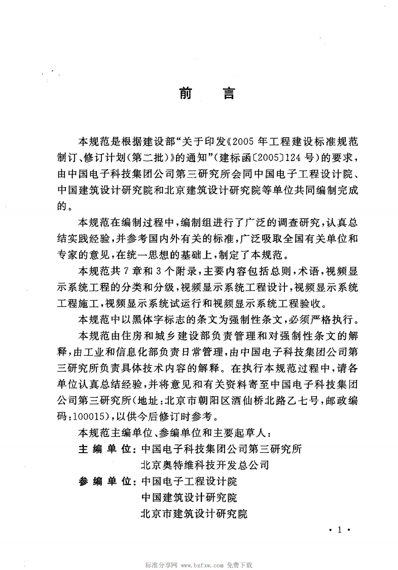 P_视频显示系统工程技术规范odefortechnicalofvideodisplaysystemeng348072@abc16天前发布关注私信1.35MB36页050P_视频显示系统工程技术规范odefortechnicalofvideodisplaysystemeng此内容为付费资源,请付费后查看¥23¥36黄金会员免费钻石会员免费立即购买您当前未登录!建议登陆后购买,可保存购买订单付费资源 第1页 / 共36页 第2页 / 共36页 第3页 / 共36页 第4页 / 共36页 第5页 / 共36页 试读已结束,还剩31页,您可下载完整版后进行离线阅读 THE END标准规范 文本预览 UDC中华人民共和国国家标准PGB50464-2008视频显示系统工程技术规范Code for technical of video display system engineering2008-12-15发布2009-06-01实施中华人民共和国住房和城乡建设部联合发布中华人民共和国国家质量监督检验检疫总局 查看更多 收起部分 喜欢就支持一下吧收藏