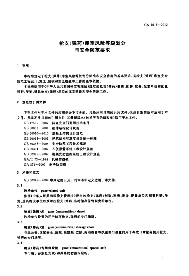 、、“、“1_华人民天和电公一A-__枪支(弹药)库室风险等级划分与安全防范要求Levelofriskandsecurityrequirementsforguns(ammunition)depot_storageroom348072@abc15天前发布关注私信2.36MB9页024、、“、“1_华人民天和电公一A-__枪支(弹药)库室风险等级划分与安全防范要求Levelofriskandsecurityrequirementsforguns(ammunition)depot_storageroom此内容为付费资源,请付费后查看¥23¥36黄金会员免费钻石会员免费立即购买您当前未登录!建议登陆后购买,可保存购买订单付费资源 第1页 / 共9页 第2页 / 共9页 第3页 / 共9页 第4页 / 共9页 第5页 / 共9页 试读已结束,还剩4页,您可下载完整版后进行离线阅读 THE END标准规范 文本预览 1Cs13.310A91GA中华人民共和国公共安全行业标准GA1016-2012枪支(弹药)库室风险等级划分与安全防范要求Level of risk and security requirementsfor guns (ammunition)depot/storage room2012-12-26发布2012-12-26实施中华人民共和国公安部:发布 查看更多 收起部分 喜欢就支持一下吧收藏