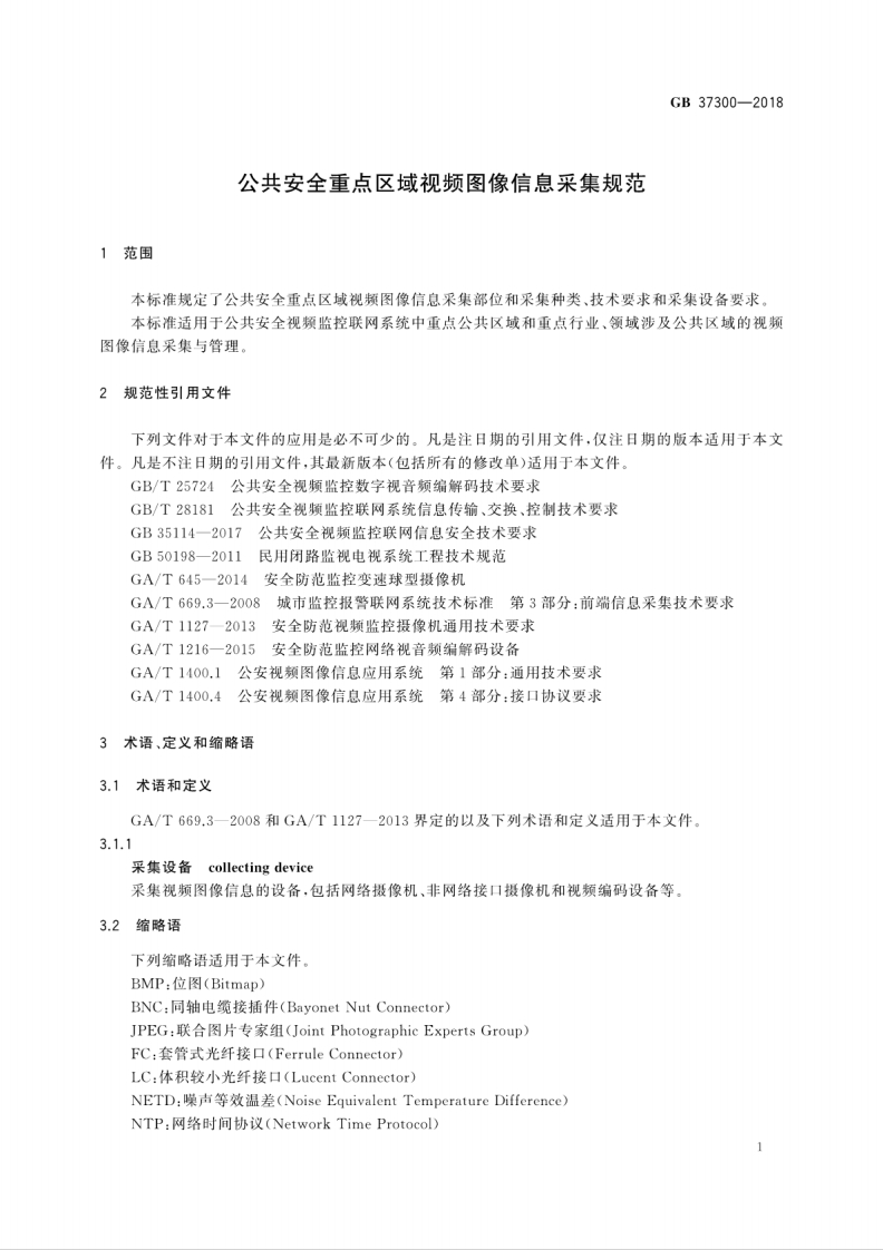 中_中华人民共_公共安全重点区域视频图像信息采集规范Specificationsforvideoandimageinformationcollectioninpublicsecuritykeyareas348072@abc15天前发布关注私信0.62MB12页037中_中华人民共_公共安全重点区域视频图像信息采集规范Specificationsforvideoandimageinformationcollectioninpublicsecuritykeyareas此内容为付费资源,请付费后查看¥23¥36黄金会员免费钻石会员免费立即购买您当前未登录!建议登陆后购买,可保存购买订单付费资源 第1页 / 共12页 第2页 / 共12页 第3页 / 共12页 第4页 / 共12页 第5页 / 共12页 试读已结束,还剩7页,您可下载完整版后进行离线阅读 THE END标准规范 文本预览 1CS13.310A91GB中华人民共和国国家标准GB37300-2018公共安全重点区域视频图像信息采集规范Specifications for video and image information collection inpublic security key areas2018-12-28发布2020-01-01实施国家市场监督管理总局中国国家标准化管理委员会发布 查看更多 收起部分 喜欢就支持一下吧收藏