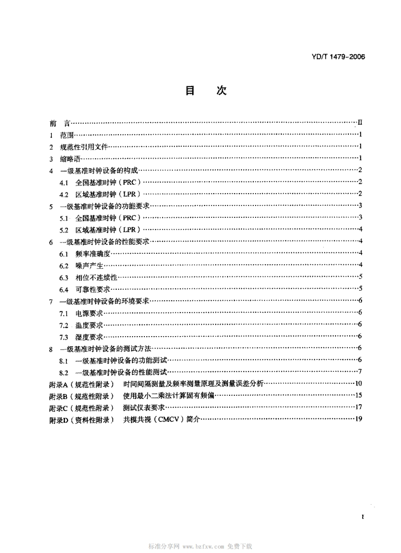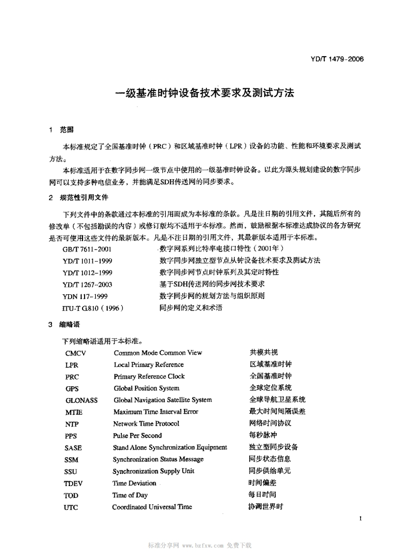 中华人民共和BMEEEEE_中华人民共和国noonnnnnnn_一级基准时钟设备技术要求及测试方法TechnicalRequirementsandTestingMethodsofPrimaryRoferenceClockEouipment348072@abc14天前发布关注私信0.57MB22页034中华人民共和BMEEEEE_中华人民共和国noonnnnnnn_一级基准时钟设备技术要求及测试方法TechnicalRequirementsandTestingMethodsofPrimaryRoferenceClockEouipment此内容为付费资源,请付费后查看¥23¥36黄金会员免费钻石会员免费立即购买您当前未登录!建议登陆后购买,可保存购买订单付费资源 第1页 / 共22页 第2页 / 共22页 第3页 / 共22页 第4页 / 共22页 第5页 / 共22页 试读已结束,还剩17页,您可下载完整版后进行离线阅读 THE END标准规范 文本预览 YD中华人民共和国通信行业标准YD/T1479-2006一级基准时钟设备技术要求及测试方法Technical Requirements and Testing Methods ofPrimary Reference Clock Equipment2006-06-08发布2006-10-01实施中华人民共和国信息产业部发布 查看更多 收起部分 喜欢就支持一下吧收藏