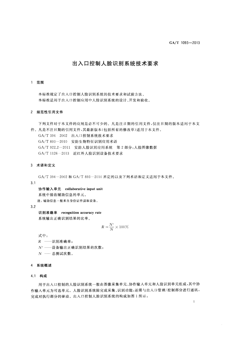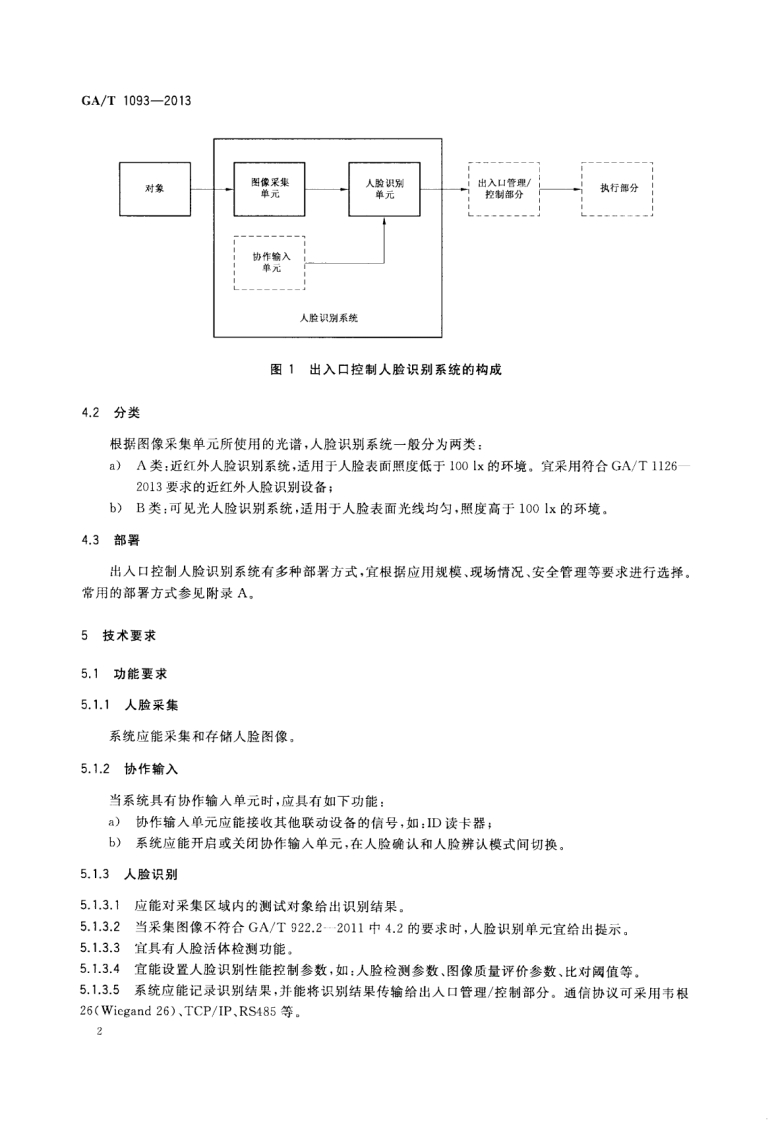 中华人民共和国_中华人民共和国_出入口控制人脸识别系统技术要求Technicalrequirementsforfacerecognitionsystemforaccesscontrol348072@abc14天前发布关注私信0.68MB13页031中华人民共和国_中华人民共和国_出入口控制人脸识别系统技术要求Technicalrequirementsforfacerecognitionsystemforaccesscontrol此内容为付费资源,请付费后查看¥23¥36黄金会员免费钻石会员免费立即购买您当前未登录!建议登陆后购买,可保存购买订单付费资源 第1页 / 共13页 第2页 / 共13页 第3页 / 共13页 第4页 / 共13页 第5页 / 共13页 试读已结束,还剩8页,您可下载完整版后进行离线阅读 THE END标准规范 文本预览 1CS13.310A91A中华人民共和国公共安全行业标准GA/T1093-2013出入口控制人脸识别系统技术要求Technical requirements for face recognition system for access control2013-12-16发布2014-01-01实施中华人民共和国公安部发布 查看更多 收起部分 喜欢就支持一下吧收藏