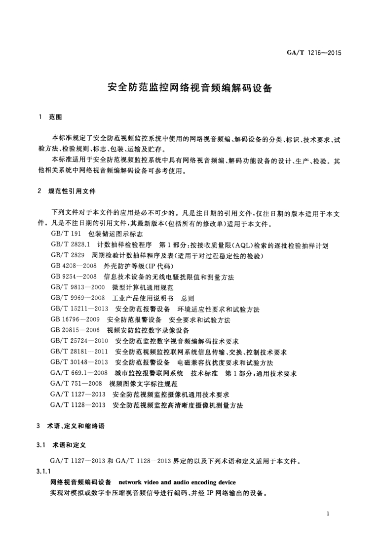 中华人民共和国_中华人民共和国_安全防范监控网络视音频编解码设备Networkvideoandaudiocodecsinsecuritysurveillancesystem348072@abc14天前发布关注私信2.12MB24页043中华人民共和国_中华人民共和国_安全防范监控网络视音频编解码设备Networkvideoandaudiocodecsinsecuritysurveillancesystem此内容为付费资源,请付费后查看¥23¥36黄金会员免费钻石会员免费立即购买您当前未登录!建议登陆后购买,可保存购买订单付费资源 第1页 / 共24页 第2页 / 共24页 第3页 / 共24页 第4页 / 共24页 第5页 / 共24页 试读已结束,还剩19页,您可下载完整版后进行离线阅读 THE END标准规范 文本预览 1CS13.310A91GA中华人民共和国公共安全行业标准GA/T1216-2015安全防范监控网络视音频编解码设备Network video and audio codecs in security surveillance system2015-01-29发布2015-03-01实施中华人民共和国公安部发布 查看更多 收起部分 喜欢就支持一下吧收藏