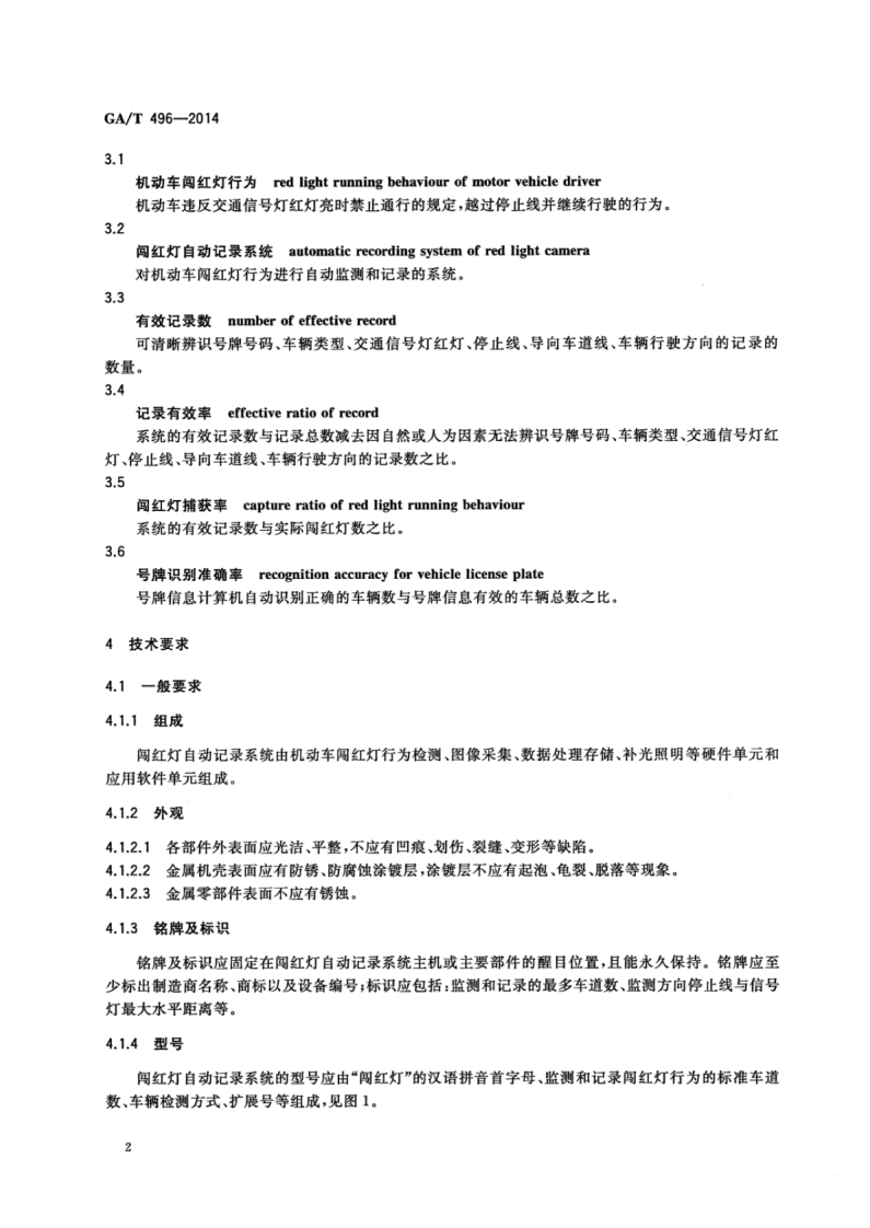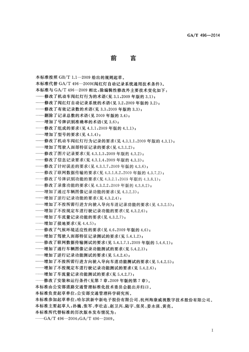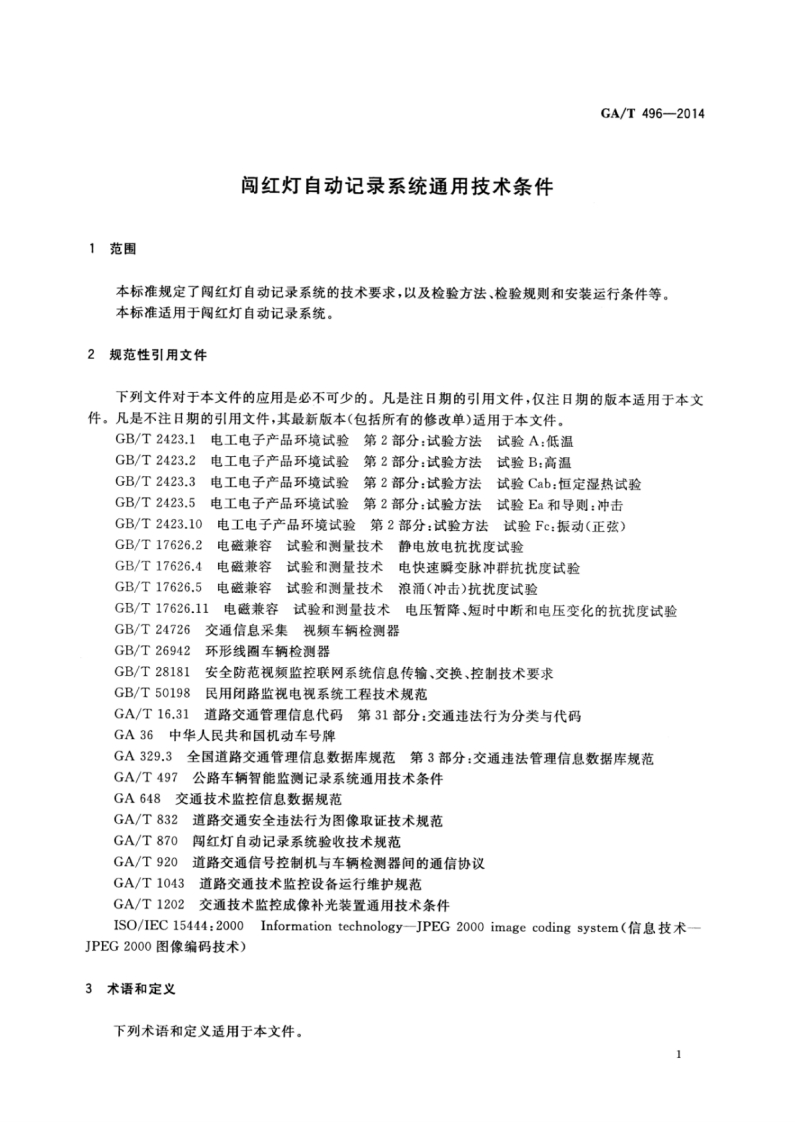 中华人民共和国_中华人民共和国_闯红灯自动记录系统通用技术条件Generaltechnicalspecificationsforautomaticrecordingsystemsofredlightcameras348072@abc14天前发布关注私信5.36MB16页050中华人民共和国_中华人民共和国_闯红灯自动记录系统通用技术条件Generaltechnicalspecificationsforautomaticrecordingsystemsofredlightcameras此内容为付费资源,请付费后查看¥23¥36黄金会员免费钻石会员免费立即购买您当前未登录!建议登陆后购买,可保存购买订单付费资源 第1页 / 共16页 第2页 / 共16页 第3页 / 共16页 第4页 / 共16页 第5页 / 共16页 试读已结束,还剩11页,您可下载完整版后进行离线阅读 THE END标准规范 文本预览 1Cs93.080.30R84GA中华人民共和国公共安全行业标准GA/T496-2014代替GA/T496-2009闯红灯自动记录系统通用技术条件General technical specifications for automatic recording systems ofred light cameras2014-10-24发布2014-12-01实施中华人民共和国公安部发布 查看更多 收起部分 喜欢就支持一下吧收藏