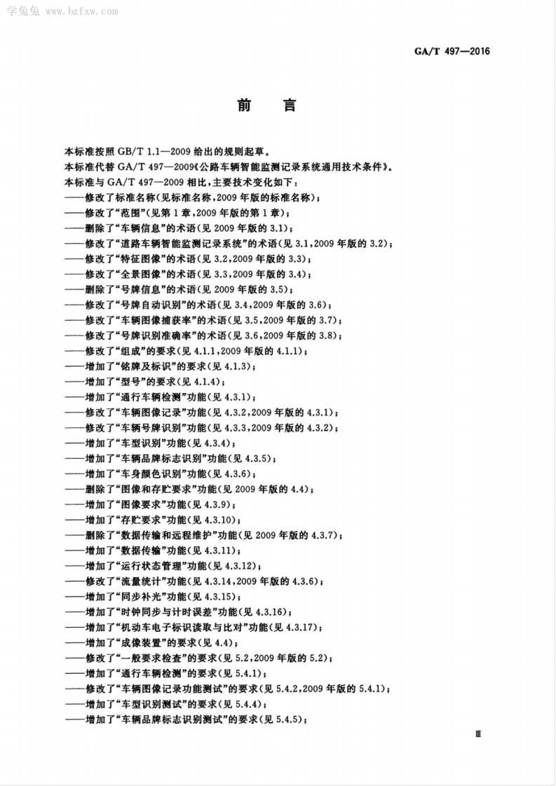 1CS93.080.30R84GA中华人民共和国公共安全行业标准GA/T497-2016代替GA/T497-2009道路车辆智能监测记录系统通用技术条件General technical specifications for intelligent monitoring and recording systemfor vehicles on roads2016-11-14发布2017-01-01实施中华人民共和国公安部发布