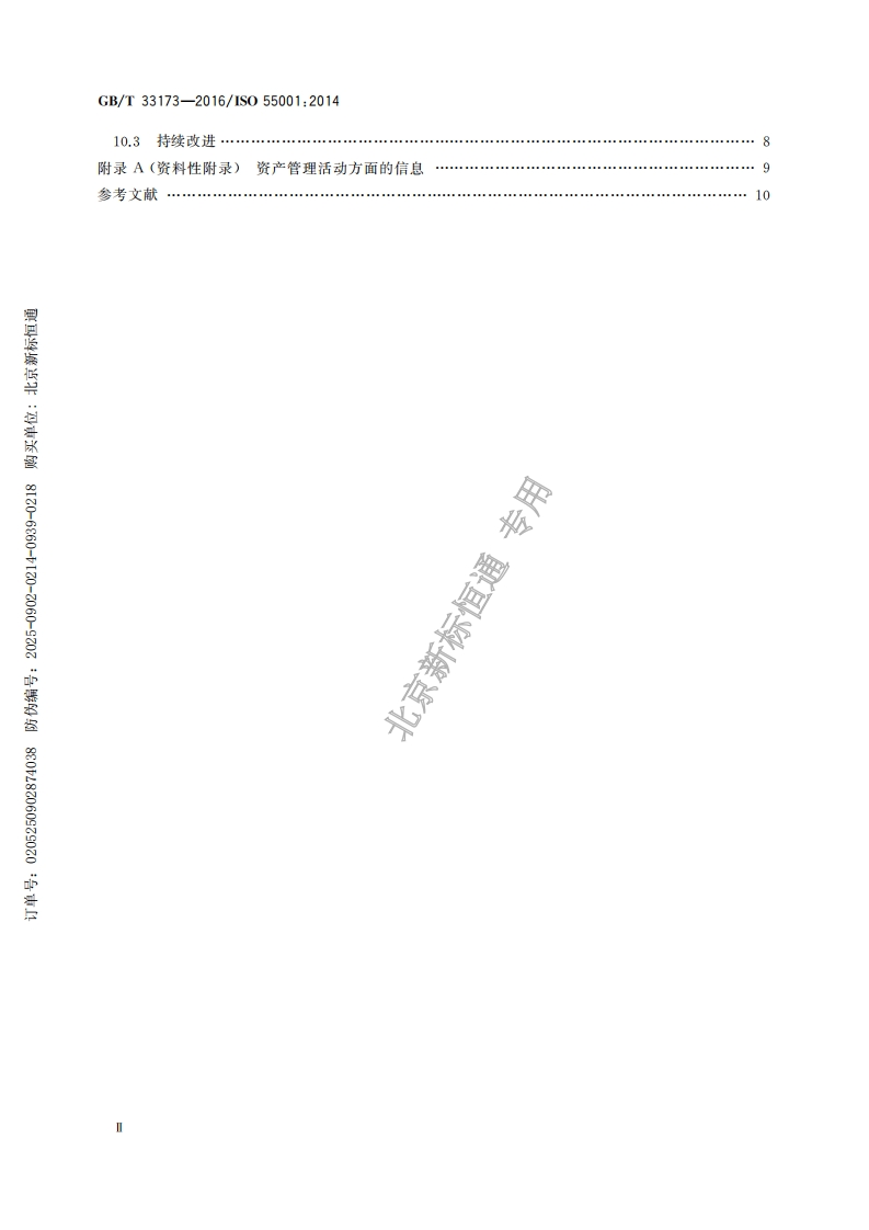 1CS03.100.01A00中华人民共和国国家标准GB/T33173一2016/IS055001:2014资产管理管理体系要求Asset management-Management systems-Requirements(ISO55001:2014,IDT)2016-10-13发布2017-05-01实施中华人民共和国国家质量监督检验检疫总局发布中国国家标准化管理委员会
