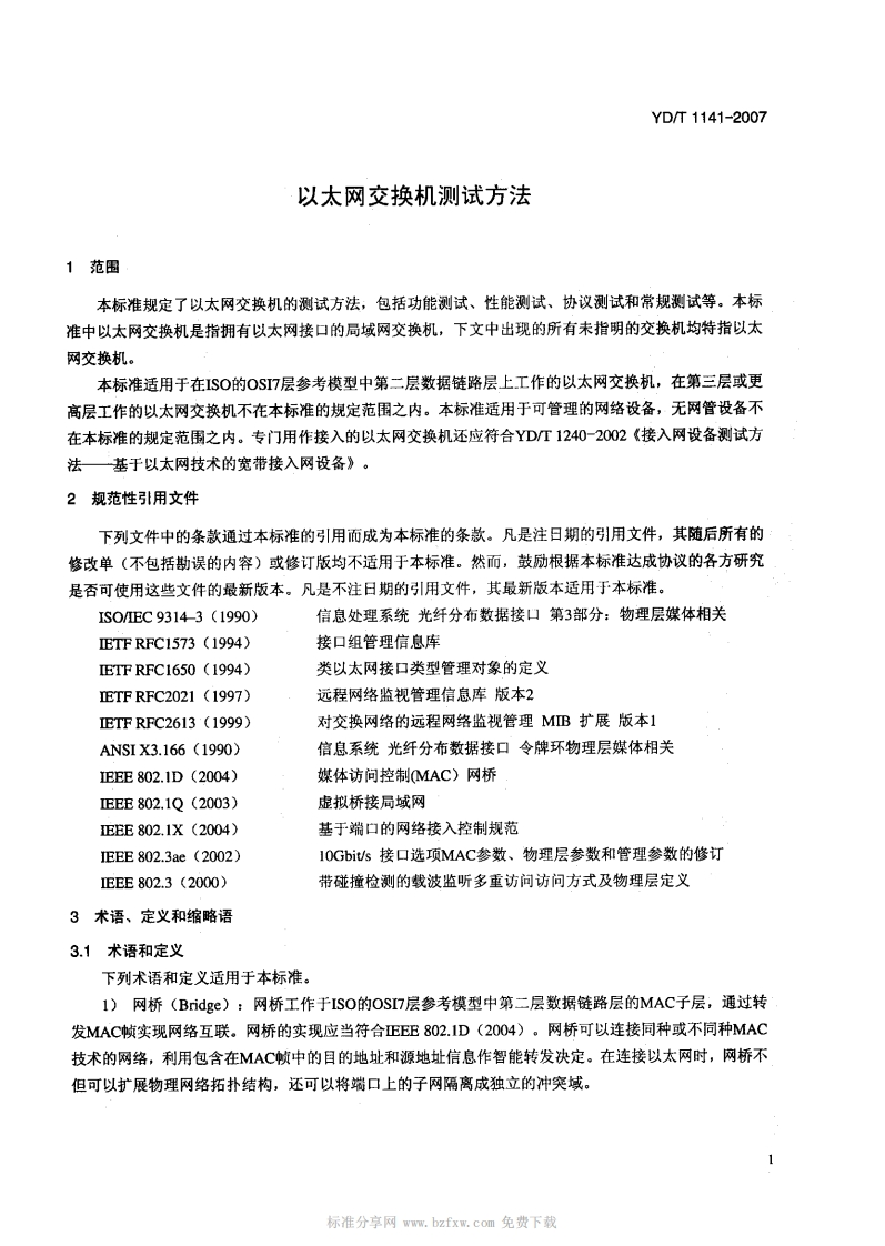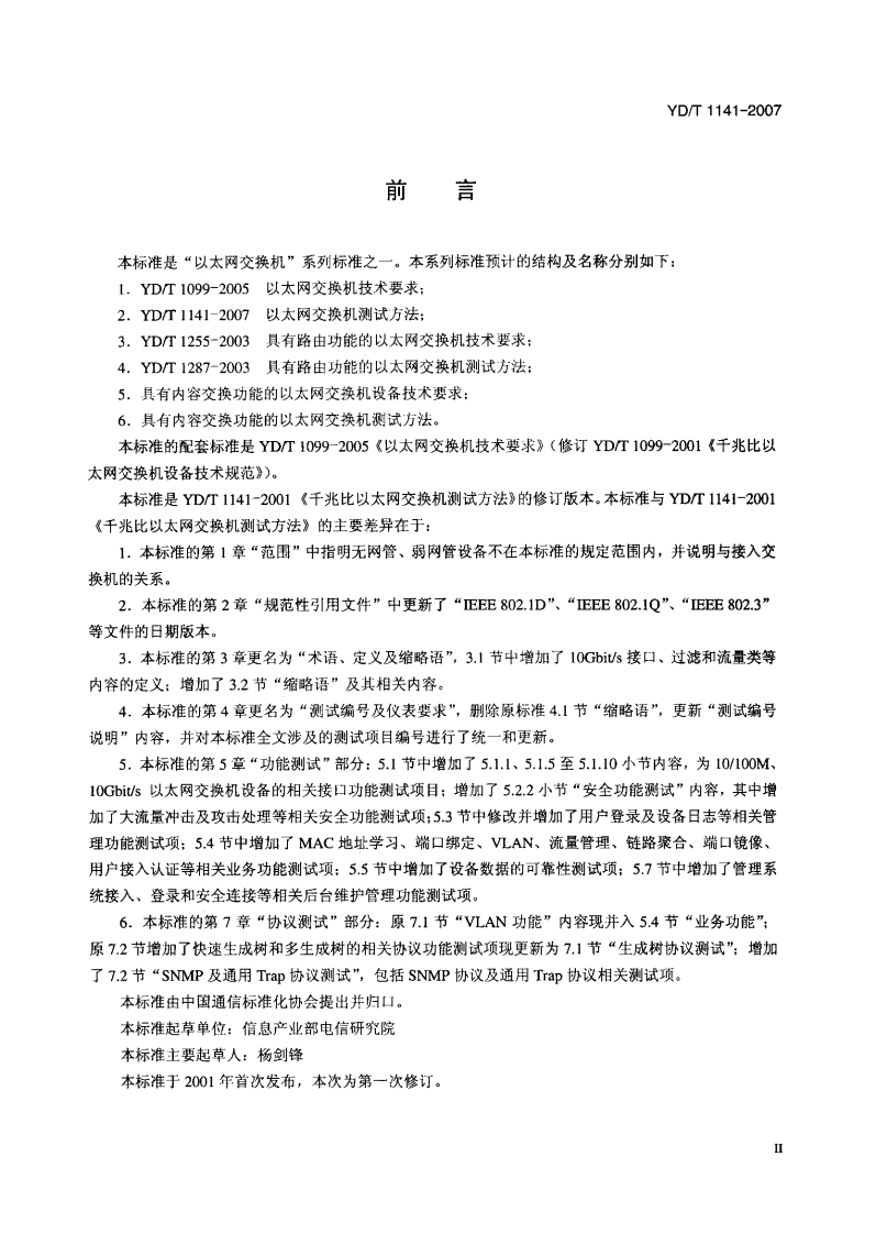代替YD_T1141-2001以太网交换机测试方法TestingMethodsforEthernetSwitch_C”代替YD_T1141-2001以太网交换机测试方法TestingMethodsforEthernetSwitch348072@abc12天前发布关注私信1.90MB74页039代替YD_T1141-2001以太网交换机测试方法TestingMethodsforEthernetSwitch_C”代替YD_T1141-2001以太网交换机测试方法TestingMethodsforEthernetSwitch此内容为付费资源,请付费后查看¥23¥36黄金会员免费钻石会员免费立即购买您当前未登录!建议登陆后购买,可保存购买订单付费资源 第1页 / 共74页 第2页 / 共74页 第3页 / 共74页 第4页 / 共74页 第5页 / 共74页 试读已结束,还剩69页,您可下载完整版后进行离线阅读 THE END标准规范 文本预览 1CS3304040M32YD中华人民共和国通信行业标准YD/T1141-2007代替YD/T1141-2001以太网交换机测试方法Testing Methods for Ethernet Switch2007-09-29发布2008-01-01实施中华人民共和国信息产业部发布 查看更多 收起部分 喜欢就支持一下吧收藏