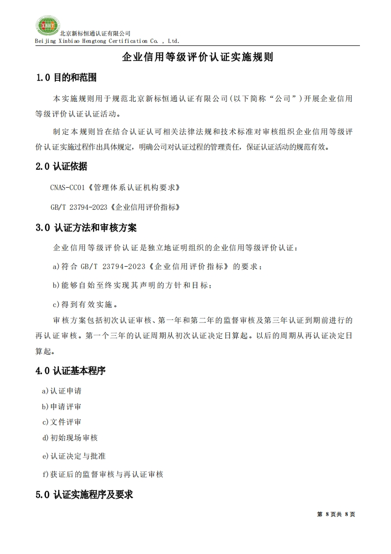 企业信用等级评价认证实施规则XBHT-GZ-004A_1348072@abc12天前发布关注私信0.69MB8页041企业信用等级评价认证实施规则XBHT-GZ-004A_1此内容为付费资源,请付费后查看¥23¥36黄金会员免费钻石会员免费立即购买您当前未登录!建议登陆后购买,可保存购买订单付费资源 第1页 / 共8页 第2页 / 共8页 第3页 / 共8页 第4页 / 共8页 第5页 / 共8页 试读已结束,还剩3页,您可下载完整版后进行离线阅读 THE END标准规范 文本预览 北京新标恒通认证有限公司Beijing Xinbiao Hengtong Certification Co.,Ltd.企业信用等级评价认证实施规则XBHT-GZ-004 A/12023年08月23日发布2023年08月25日实施北京新标恒通认证有限公司发布 查看更多 收起部分 喜欢就支持一下吧收藏