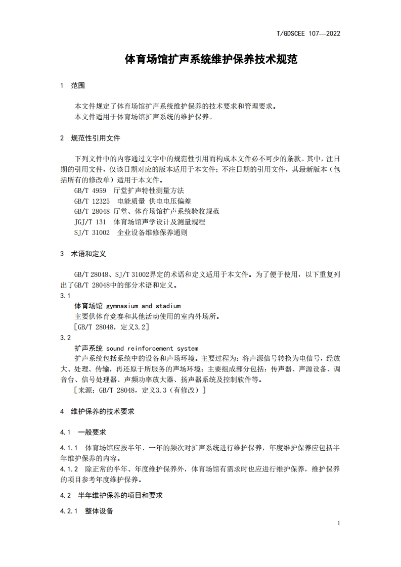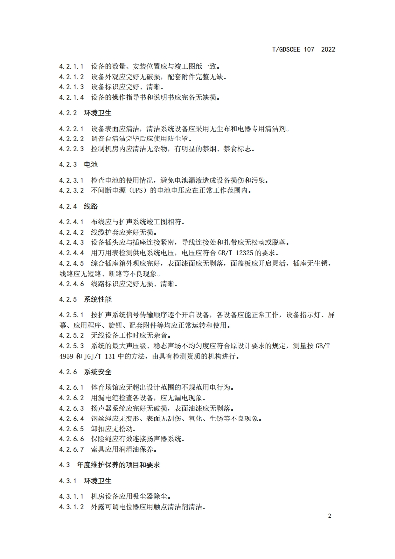 体育场馆扩声系统维护保养技术规范echnicalspecificationforsoundreinforcementsystemmaintenanceofgymnasiunandstadium348072@abc11天前发布关注私信0.40MB10页021体育场馆扩声系统维护保养技术规范echnicalspecificationforsoundreinforcementsystemmaintenanceofgymnasiunandstadium此内容为付费资源,请付费后查看¥23¥36黄金会员免费钻石会员免费立即购买您当前未登录!建议登陆后购买,可保存购买订单付费资源 第1页 / 共10页 第2页 / 共10页 第3页 / 共10页 第4页 / 共10页 第5页 / 共10页 试读已结束,还剩5页,您可下载完整版后进行离线阅读 THE END标准规范 文本预览 ICS29.140.40TGDSCEEK73广东演艺设备行业商会团体标准T/GDSCEE 107-2022体育场馆扩声系统维护保养技术规范Technical specification for sound reinforcement system maintenance of gymnasiun andstadium2022-06-30发布2022-08-01实施广东演艺设备行业商会发布 查看更多 收起部分 喜欢就支持一下吧收藏