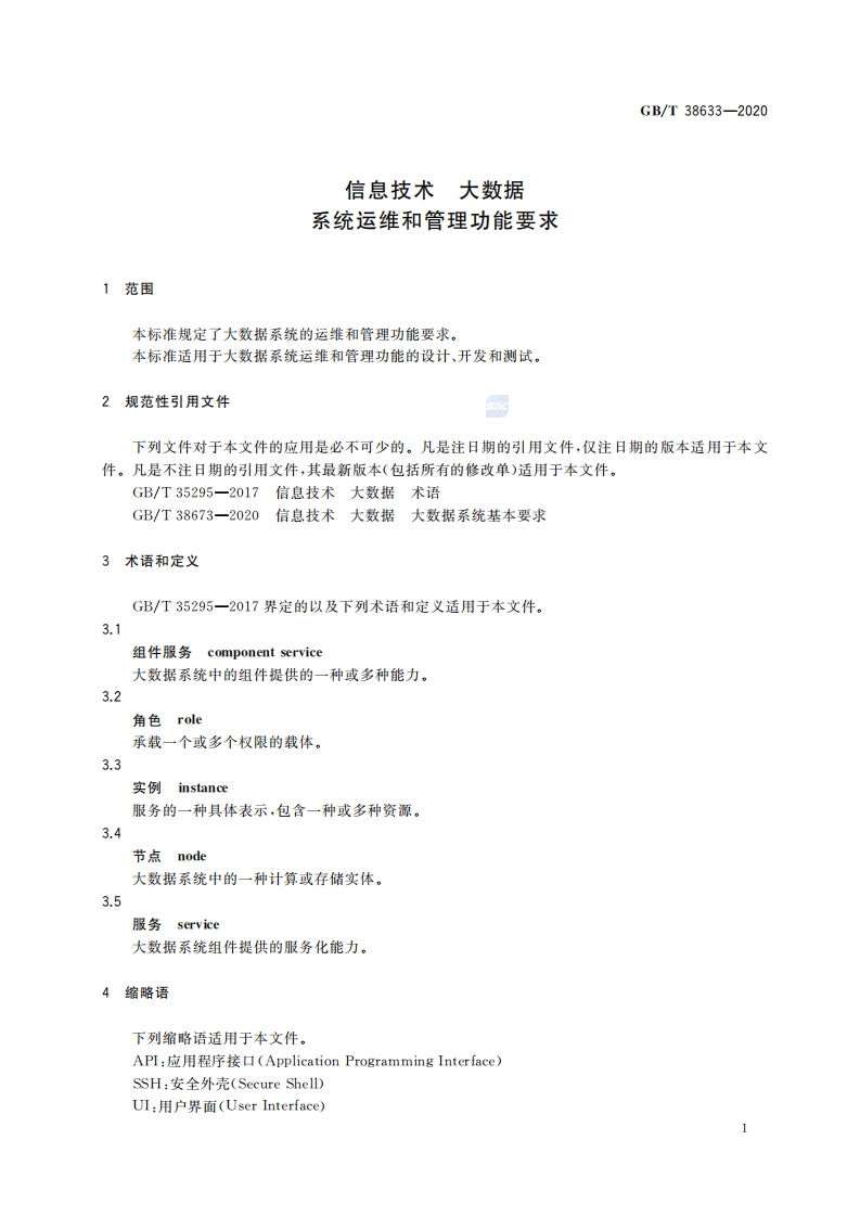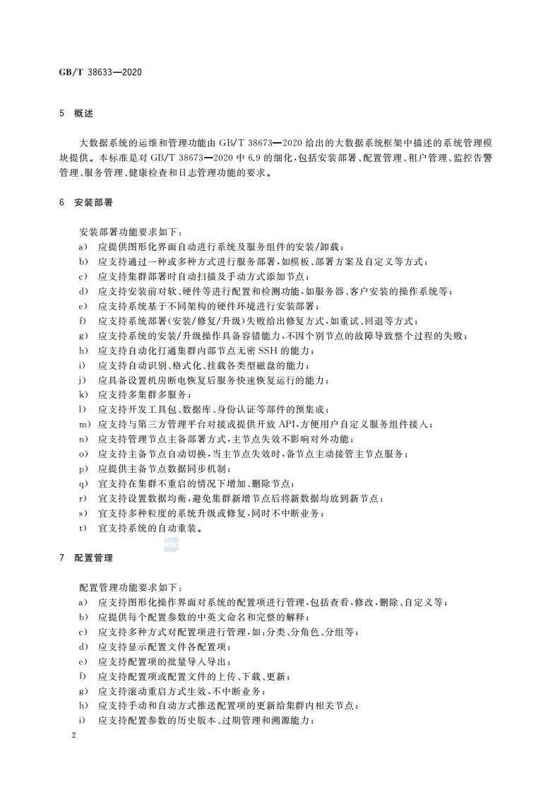 信息技术大数据系统运维和管理功能要求Informationtechnology-Bigdata-Functionalrequirementsforsystoperationandmanagement348072@abc11天前发布关注私信0.44MB6页029信息技术大数据系统运维和管理功能要求Informationtechnology-Bigdata-Functionalrequirementsforsystoperationandmanagement此内容为付费资源,请付费后查看¥23¥36黄金会员免费钻石会员免费立即购买您当前未登录!建议登陆后购买,可保存购买订单付费资源 第1页 / 共6页 第2页 / 共6页 第3页 / 共6页 第4页 / 共6页 第5页 / 共6页 试读已结束,还剩1页,您可下载完整版后进行离线阅读 THE END标准规范 文本预览 ICS35.240L67中华人民共和国国家标准GB/T38633-2020四信息技术大数据系统运维和管理功能要求Information technology-Big data-Functional requirements for systemoperation and management2020-04-28发布2020-11-01实施国家市场监督管理总局国家标准化管理委员会发布 查看更多 收起部分 喜欢就支持一下吧收藏