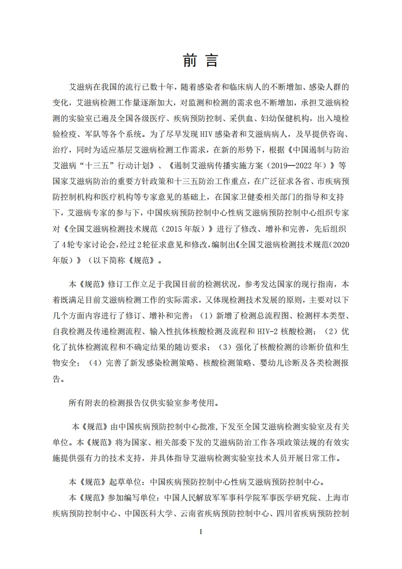 全国艾滋病检测技术规范NationalGuidelineforDetectionofHIV_AIDS(2020年修订版)CHINESE中CDC1REVENTIONANDFOROISEASECONTRO348072@abc11天前发布关注私信1.14MB87页048全国艾滋病检测技术规范NationalGuidelineforDetectionofHIV_AIDS(2020年修订版)CHINESE中CDC1REVENTIONANDFOROISEASECONTRO此内容为付费资源,请付费后查看¥23¥36黄金会员免费钻石会员免费立即购买您当前未登录!建议登陆后购买,可保存购买订单付费资源 第1页 / 共87页 第2页 / 共87页 第3页 / 共87页 第4页 / 共87页 第5页 / 共87页 试读已结束,还剩82页,您可下载完整版后进行离线阅读 THE END标准规范 文本预览 全国艾滋病检测技术规范National Guideline for Detection of HIV/AIDS(2020年修订版)CHINESEPREVENTIONCENTER FOR DISEASE CONTROI AND中国疾病预防控制中心二O二O年三月 查看更多 收起部分 喜欢就支持一下吧收藏