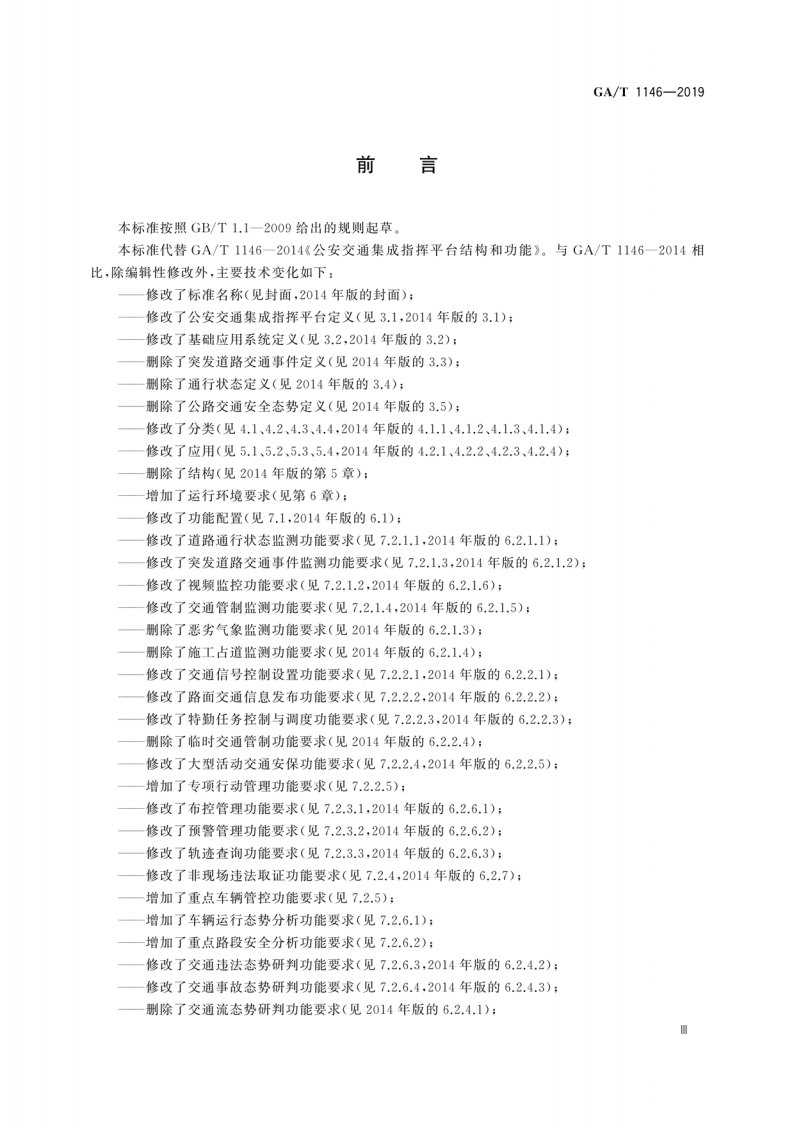 公安交通集成指挥平台通用技术条件Generaltechnicalspecificationsforintegratedtrafficcommandplatformofpublicsecurity_公安交通集成指挥平台通用技术条件Generaltechnicalspecificationsforintegratedtrafficcommandplatformofpublicsecurity348072@abc11天前发布关注私信3.89MB28页050公安交通集成指挥平台通用技术条件Generaltechnicalspecificationsforintegratedtrafficcommandplatformofpublicsecurity_公安交通集成指挥平台通用技术条件Generaltechnicalspecificationsforintegratedtrafficcommandplatformofpublicsecurity此内容为付费资源,请付费后查看¥23¥36黄金会员免费钻石会员免费立即购买您当前未登录!建议登陆后购买,可保存购买订单付费资源 第1页 / 共28页 第2页 / 共28页 第3页 / 共28页 第4页 / 共28页 第5页 / 共28页 试读已结束,还剩23页,您可下载完整版后进行离线阅读 THE END标准规范 文本预览 1CS43.020R80GA中华人民共和国公共安全行业标准GA/T1146-2019代替GA/T1146-2014公安交通集成指挥平台通用技术条件General technical specifications for integrated trafficcommand platform of public security2019-10-11发布2020-01-01实施中华人民共和国公安部发布 查看更多 收起部分 喜欢就支持一下吧收藏