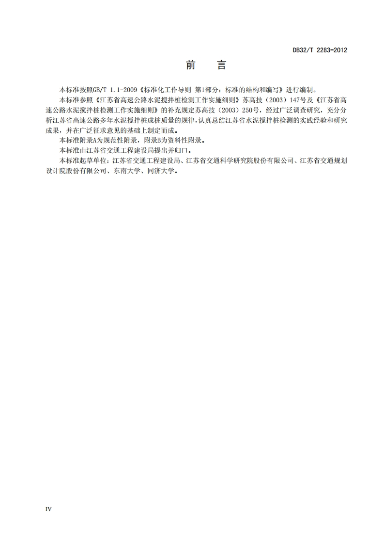 公路工程水泥搅拌桩成桩质量检测规程InspectionSpecificationforCementMixingpileQualityofHighywayEngineerings348072@abc10天前发布关注私信0.27MB20页041公路工程水泥搅拌桩成桩质量检测规程InspectionSpecificationforCementMixingpileQualityofHighywayEngineerings此内容为付费资源,请付费后查看¥23¥36黄金会员免费钻石会员免费立即购买您当前未登录!建议登陆后购买,可保存购买订单付费资源 第1页 / 共20页 第2页 / 共20页 第3页 / 共20页 第4页 / 共20页 第5页 / 共20页 试读已结束,还剩15页,您可下载完整版后进行离线阅读 THE END标准规范 文本预览 1Cs93.080P66备案号:37591-2013DB32江苏省地方,标准DB32/T2283-2012公路工程水泥搅拌桩成桩质量检测规程Inspection Specification for Cement Mixing pile Quality ofHighyway Engineerings2012-12-28发布2013-03-28实施江苏省质量技术监督局发布 查看更多 收起部分 喜欢就支持一下吧收藏