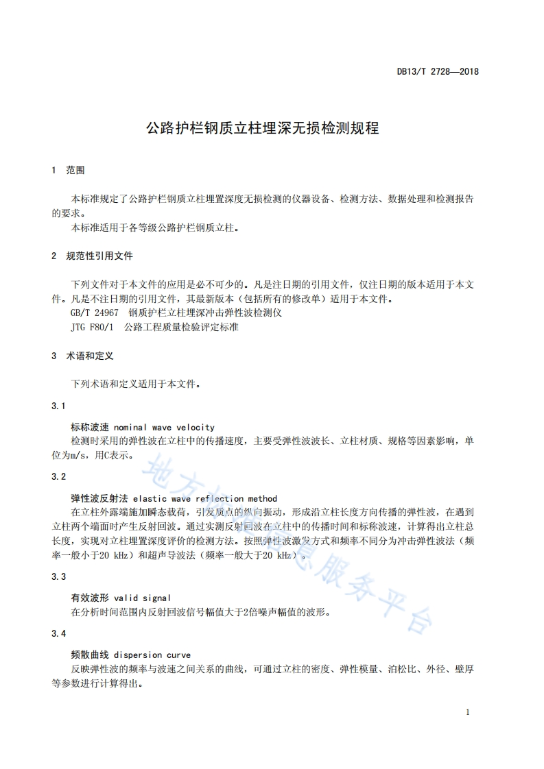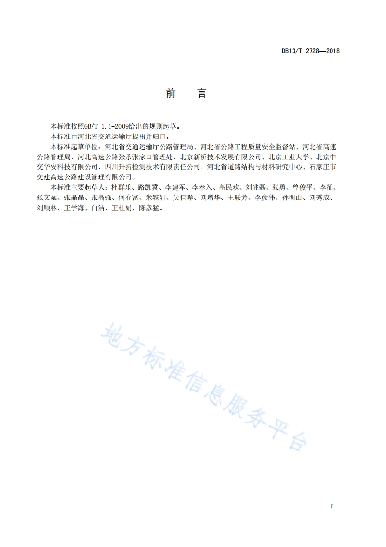公路护栏钢质立柱埋深无损检测规程地方标冷348072@abc10天前发布关注私信0.54MB10页034公路护栏钢质立柱埋深无损检测规程地方标冷此内容为付费资源,请付费后查看¥23¥36黄金会员免费钻石会员免费立即购买您当前未登录!建议登陆后购买,可保存购买订单付费资源 第1页 / 共10页 第2页 / 共10页 第3页 / 共10页 第4页 / 共10页 第5页 / 共10页 试读已结束,还剩5页,您可下载完整版后进行离线阅读 THE END标准规范 文本预览 ICS03.220.20R04DB13河北省地方黄标准DB13/T2728-2018公路护栏钢质立柱埋深无损检测规程地方标准信息服务平台2018-07-16发布2018-08-16实施河北省质量技术监督局发布 查看更多 收起部分 喜欢就支持一下吧收藏