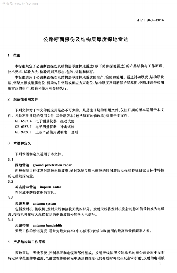 公路断面探伤及结构层厚度探地雷达348072@abc10天前发布关注私信3.67MB16页024公路断面探伤及结构层厚度探地雷达此内容为付费资源,请付费后查看¥23¥36黄金会员免费钻石会员免费立即购买您当前未登录!建议登陆后购买,可保存购买订单付费资源 第1页 / 共16页 第2页 / 共16页 第3页 / 共16页 第4页 / 共16页 第5页 / 共16页 试读已结束,还剩11页,您可下载完整版后进行离线阅读 THE END标准规范 文本预览 1Cs93.080.99P96备案号:中华人民共和国交通运输行业标准JT/T940-2014公路断面探伤及结构层厚度探地雷达Highway structure defeat and layer thickness ground penetration radar2014-12-10发布2015-04-05实施中华人民共和国交通运输部发布 查看更多 收起部分 喜欢就支持一下吧收藏