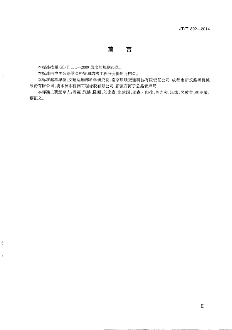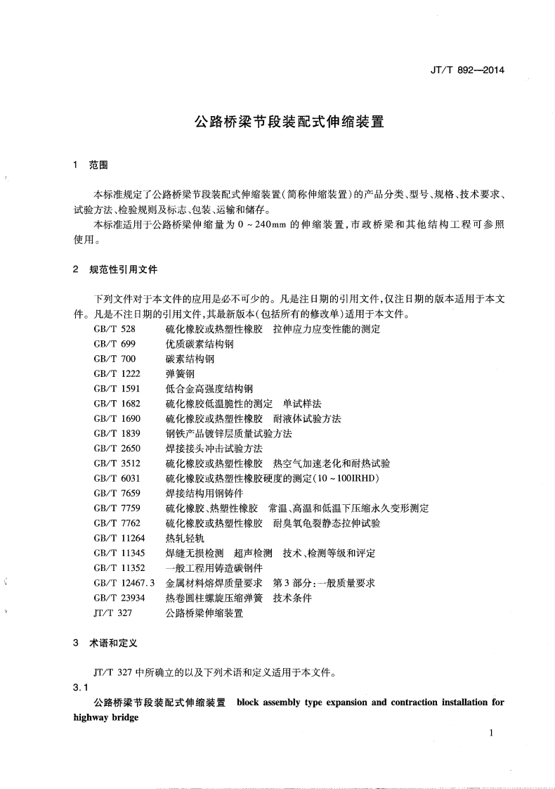 公路桥梁节段装配式伸缩装置Blockassemblytypeexpansionandcontractioninstallationforhighwaybridge348072@abc10天前发布关注私信0.51MB17页038公路桥梁节段装配式伸缩装置Blockassemblytypeexpansionandcontractioninstallationforhighwaybridge此内容为付费资源,请付费后查看¥23¥36黄金会员免费钻石会员免费立即购买您当前未登录!建议登陆后购买,可保存购买订单付费资源 第1页 / 共17页 第2页 / 共17页 第3页 / 共17页 第4页 / 共17页 第5页 / 共17页 试读已结束,还剩12页,您可下载完整版后进行离线阅读 THE END标准规范 文本预览 ICS93.040名茶P28备案号:中华人民共和国交通运输行业标准JT/T892-2014公路桥梁节段装配式伸缩装置Block assembly type expansion and contraction installation for highway bridge2014-04-15发布2014-09-01实施中华人民共和国交通运输部发布 查看更多 收起部分 喜欢就支持一下吧收藏