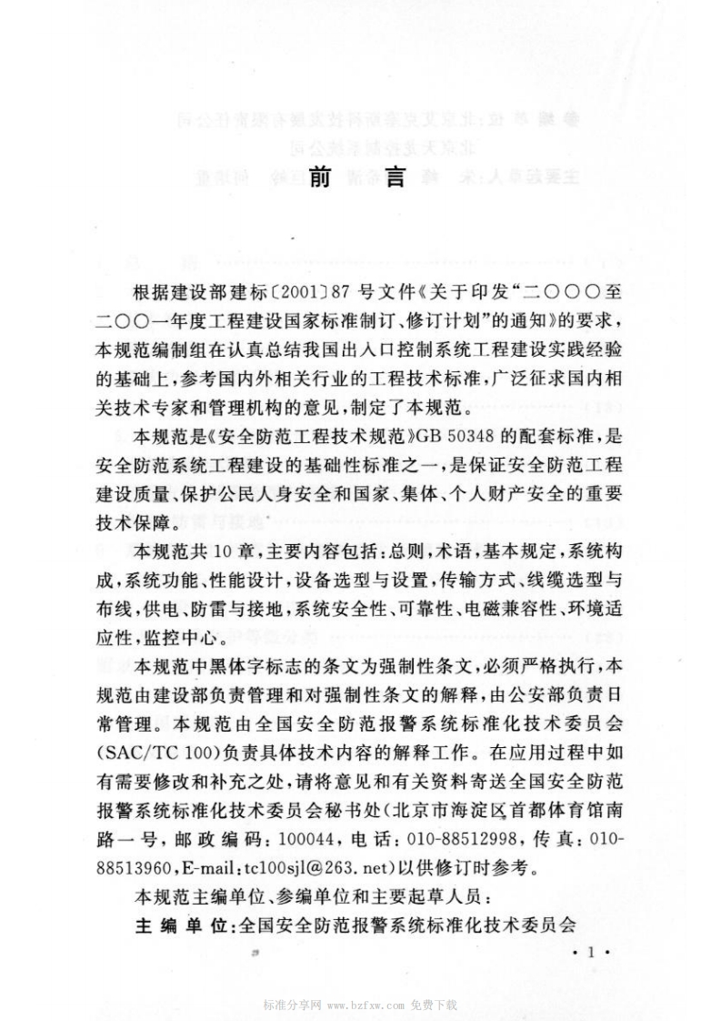 出入口控制系统工程设计规范odeofdesignforaccesscontrolsystemsengineering_出入口控制系统工程设计规范Codeofdesignforaccesscontrolsystemsengineering348072@abc9天前发布关注私信7.83MB69页020出入口控制系统工程设计规范odeofdesignforaccesscontrolsystemsengineering_出入口控制系统工程设计规范Codeofdesignforaccesscontrolsystemsengineering此内容为付费资源,请付费后查看¥23¥36黄金会员免费钻石会员免费立即购买您当前未登录!建议登陆后购买,可保存购买订单付费资源 第1页 / 共69页 第2页 / 共69页 第3页 / 共69页 第4页 / 共69页 第5页 / 共69页 试读已结束,还剩64页,您可下载完整版后进行离线阅读 THE END标准规范 文本预览 UDC中华人民共和国国家标准GBPGB50396-2007出入口控制系统工程设计规范Code of design for access control systems engineering2007-03-21发布2007-08-01实施中华人民共和国建设部联合发布中华人民共和国国家质量监督检验检疫总局 查看更多 收起部分 喜欢就支持一下吧收藏