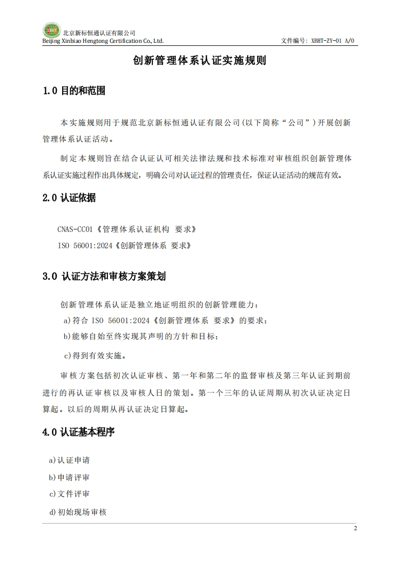 创新管理体系认证实施规则XBHT-GZ-040版本号A_0348072@abc9天前发布关注私信1.23MB51页031创新管理体系认证实施规则XBHT-GZ-040版本号A_0此内容为付费资源,请付费后查看¥23¥36黄金会员免费钻石会员免费立即购买您当前未登录!建议登陆后购买,可保存购买订单付费资源 第1页 / 共51页 第2页 / 共51页 第3页 / 共51页 第4页 / 共51页 第5页 / 共51页 试读已结束,还剩46页,您可下载完整版后进行离线阅读 THE END标准规范 文本预览 北京新标恒通认证有限公司Beijing Xinbiao Hengtong Certification Co.,Ltd.创新管理体系认证实施规则XBHT-GZ-040版本号A/02025年9月1日发布2025年9月1日实施北京新标恒通认证有限公司发布 查看更多 收起部分 喜欢就支持一下吧收藏