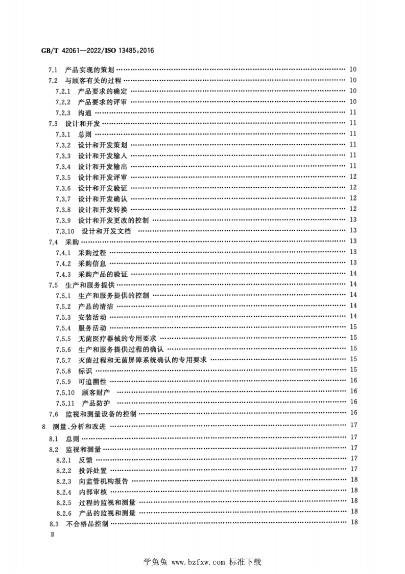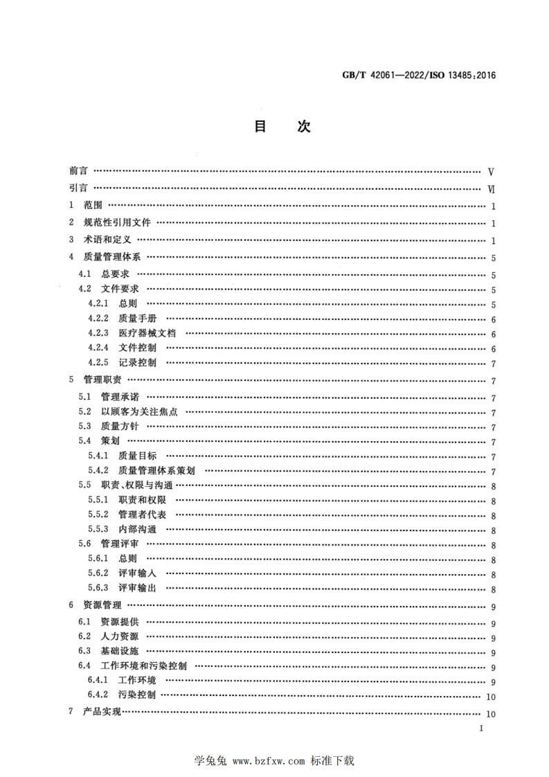 ICS03.100.70,11.040.01CCS C 30GB中华人民共和国国家标准GB/T42061-2022/IS013485:2016医疗器械)质量管理体系用于法规的要求Medical devices-Quality management systems-Requirements for regulatory purposes(IS013485:2016,IDT)2022-10-12发布2023-11-01实施国家市场监督管理总局国家标准化管理委员会发布学兔兔www.bzfxw.com标准下载