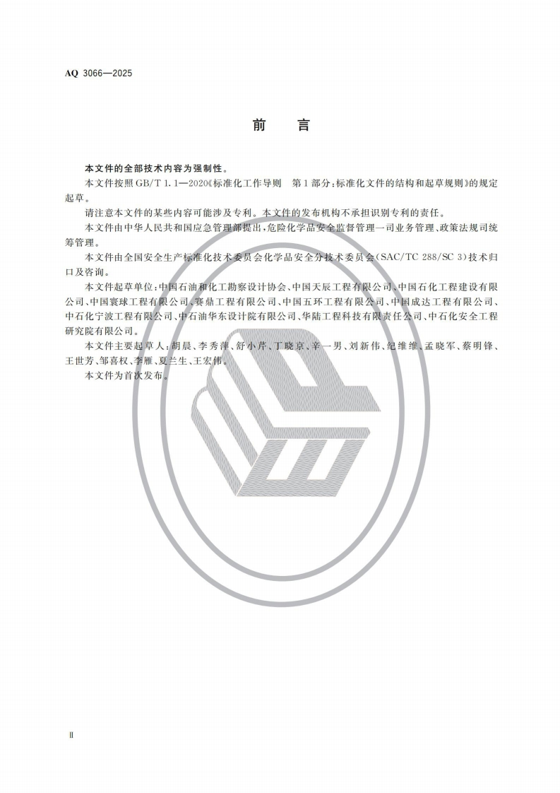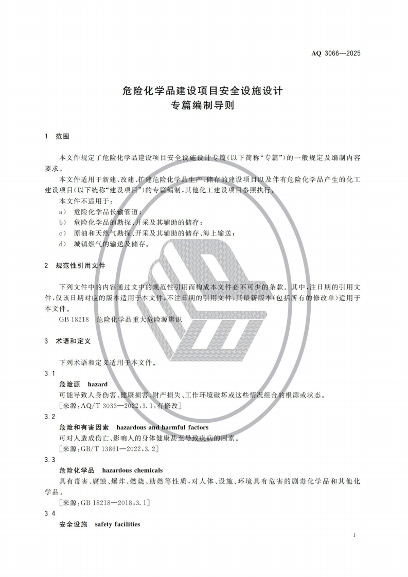 ICS13.100CCS G 09AQ中华人民共和国安全生产行业标准AQ3066一2025危险化学品建设项目安全设施设计专篇编制导则Guidelines for compilation of special report on safety facilities designfor hazardous chemical construction projects2025-12-13发布2026-07-01实施中华人民共和国应急管理部发布