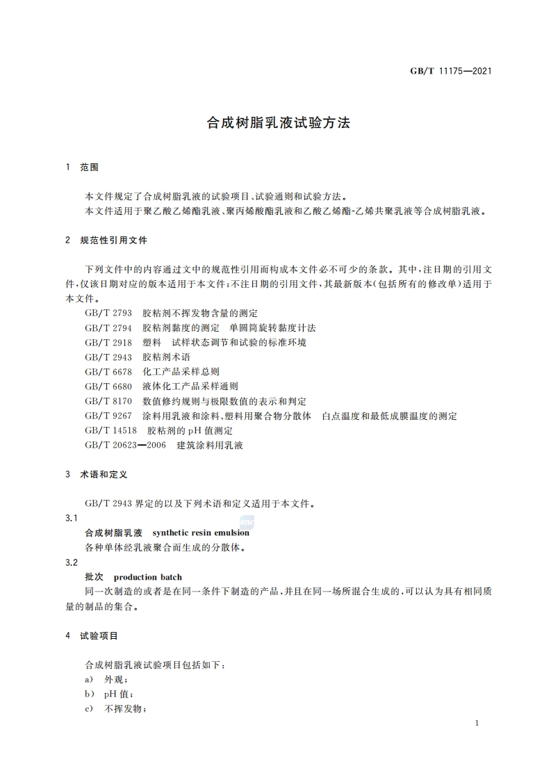 合成树脂乳液试验方法Testingmethodsforsyntheticresinemulsions348072@abc6天前发布关注私信0.86MB12页042合成树脂乳液试验方法Testingmethodsforsyntheticresinemulsions此内容为付费资源,请付费后查看¥23¥36黄金会员免费钻石会员免费立即购买您当前未登录!建议登陆后购买,可保存购买订单付费资源 第1页 / 共12页 第2页 / 共12页 第3页 / 共12页 第4页 / 共12页 第5页 / 共12页 试读已结束,还剩7页,您可下载完整版后进行离线阅读 THE END标准规范 文本预览 ICS83.180CCS G 38B中华人民共和国国家标准GB/T11175一2021代替GB/T11175一2002合成树脂乳液试验方法Testing methods for synthetic resin emulsions2021-08-20发布2022-03-01实施国家市场监督管理总局国家标准化管理委员会发布 查看更多 收起部分 喜欢就支持一下吧收藏