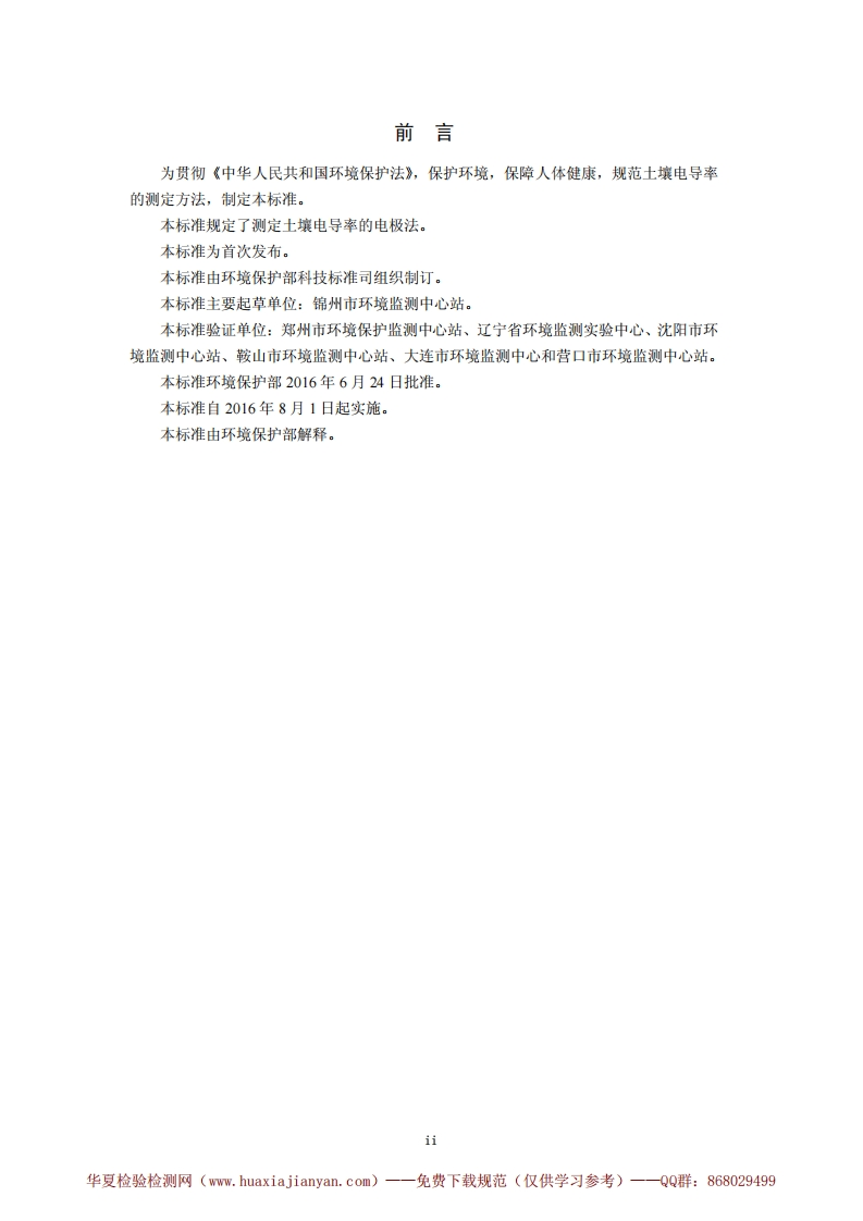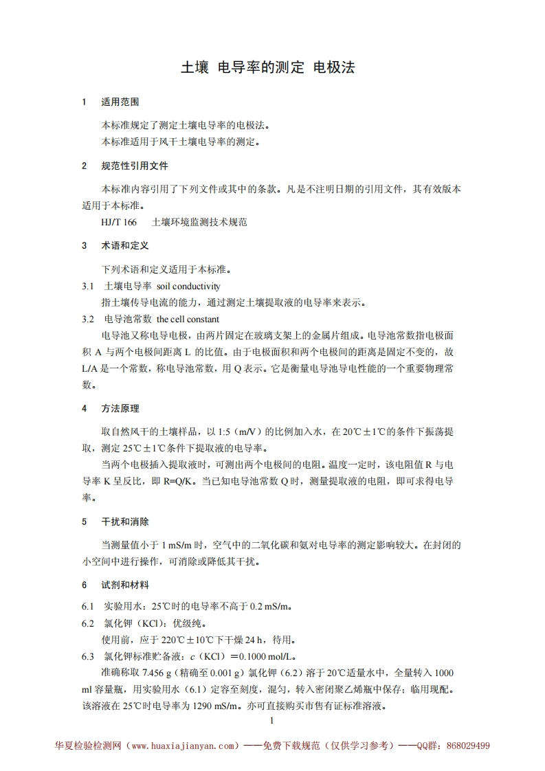 土壤电导率的测定电极法Soilquality-Determinationofconductivity-Electrodemethod(发布稿)本电子版为发布稿请以中国环境科学出版社出版的正式标准文本为准348072@abc6天前发布关注私信0.19MB7页035土壤电导率的测定电极法Soilquality-Determinationofconductivity-Electrodemethod(发布稿)本电子版为发布稿请以中国环境科学出版社出版的正式标准文本为准此内容为付费资源,请付费后查看¥23¥36黄金会员免费钻石会员免费立即购买您当前未登录!建议登陆后购买,可保存购买订单付费资源 第1页 / 共7页 第2页 / 共7页 第3页 / 共7页 第4页 / 共7页 第5页 / 共7页 试读已结束,还剩2页,您可下载完整版后进行离线阅读 THE END标准规范 文本预览 HJ中华人民共和国国家环境保护标准HⅢ802-2016土壤电导率的测定电极法Soil quality-Determination of conductivity-Electrode method(发布稿)本电子版为发布稿。请以中国环境科学出版社出版的正式标准文本为准。2016-06-24发布2016-08-01实施环境保护部发布 查看更多 收起部分 喜欢就支持一下吧收藏