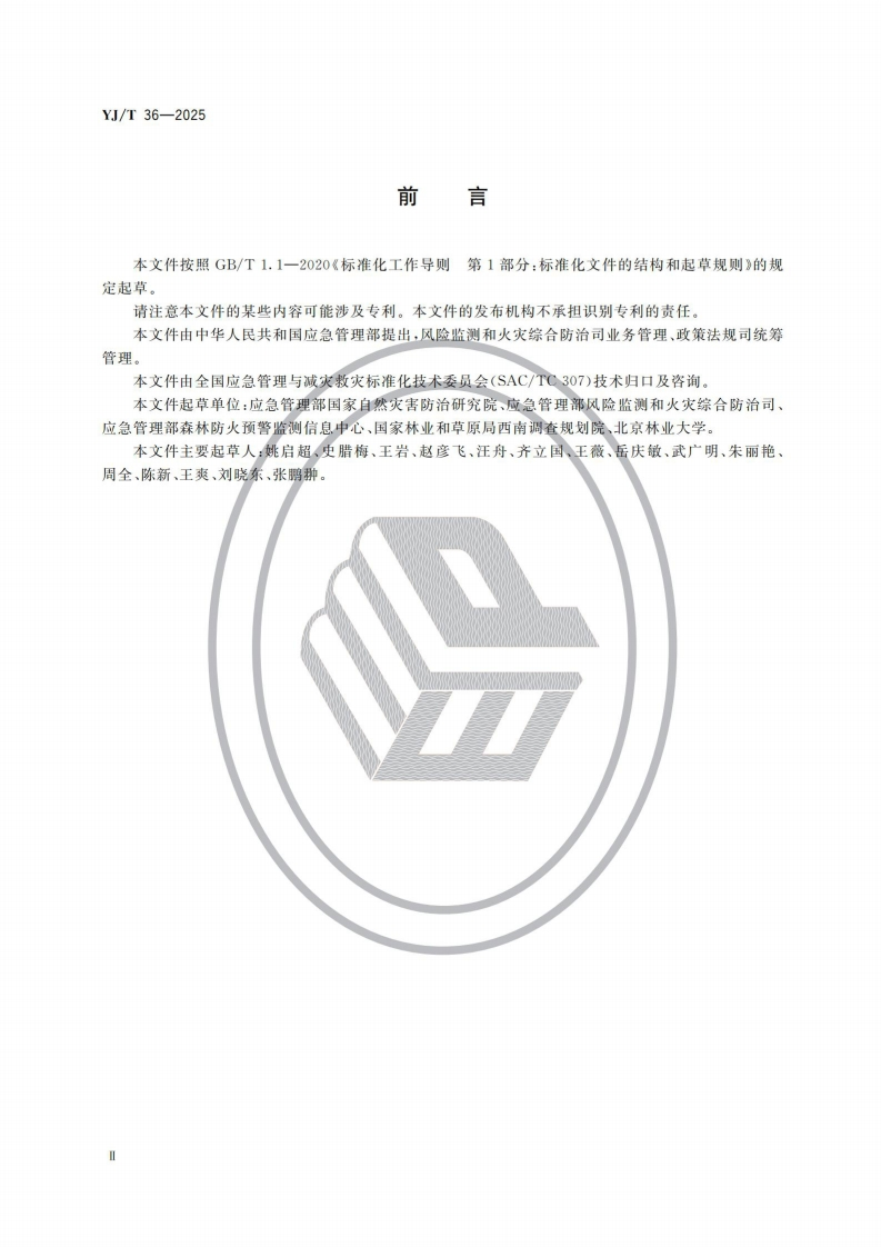 地方森林草原消防队伍建设规范Specificationfortheestablishmentoflocalforestandgrasslandfirebrigades348072@abc7天前发布关注私信3.06MB15页042地方森林草原消防队伍建设规范Specificationfortheestablishmentoflocalforestandgrasslandfirebrigades此内容为付费资源,请付费后查看¥23¥36黄金会员免费钻石会员免费立即购买您当前未登录!建议登陆后购买,可保存购买订单付费资源 第1页 / 共15页 第2页 / 共15页 第3页 / 共15页 第4页 / 共15页 第5页 / 共15页 试读已结束,还剩10页,您可下载完整版后进行离线阅读 THE END标准规范 文本预览 ICS13.220.99CCS C 82YJ中华人民共和国应急管理行业标准YJ/T36-2025地方森林草原消防队伍建设规范Specification for the establishment of local forest andgrassland fire brigades2025-11-14发布2026-06-01实施中华人民共和国应急管理部发布 查看更多 收起部分 喜欢就支持一下吧收藏