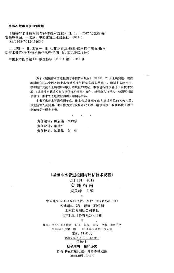 城镇排水管道检测评估技术规范348072@abc8天前发布关注私信40.72MB173页046城镇排水管道检测评估技术规范此内容为付费资源,请付费后查看¥23¥36黄金会员免费钻石会员免费立即购买您当前未登录!建议登陆后购买,可保存购买订单付费资源 第1页 / 共173页 第2页 / 共173页 第3页 / 共173页 第4页 / 共173页 第5页 / 共173页 试读已结束,还剩168页,您可下载完整版后进行离线阅读 THE END标准规范 文本预览 广州市科学技术协会广州市南山自然科学学术交流基金会资助出版广州市合力科普基金会《城镇排水管道检测与评估技术规程》CJJ181-2012实施指南安关峰主编中国定筑工业出版杜 查看更多 收起部分 喜欢就支持一下吧收藏