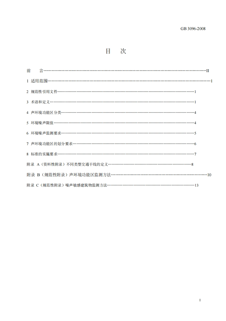 ICS13.140Z52GB中华人民共和国国家标准GB3096-2008代替GB3096-93,GB/T14623-93声环境质量标准Environmental quality standard for noise(发布稿)本电子版为发布稿。请以中国环境科学出版社出版的正式标准文本为准。2008-08-19发布2008-10-01实施环境保护部发布国家质量监督检验检疫总局