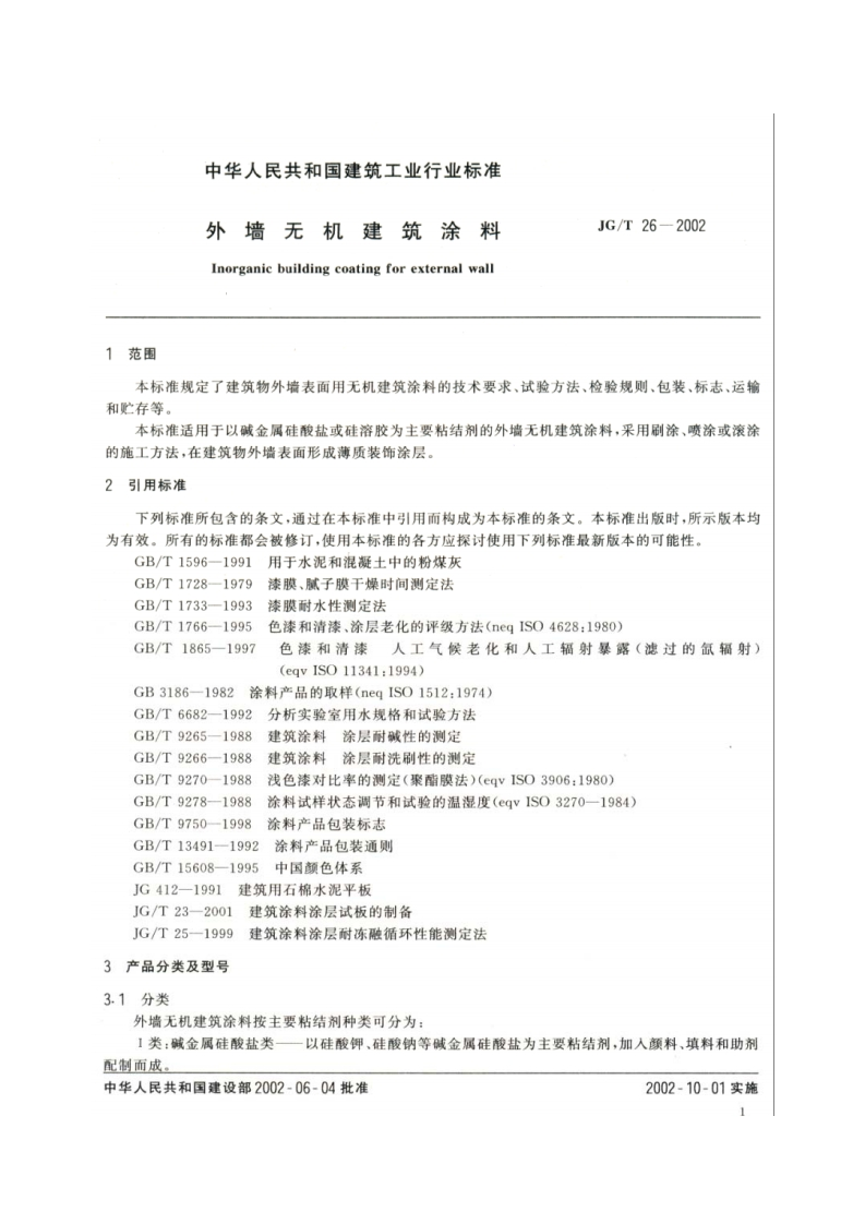 外墙无机建筑涂料Inorganicbuildingcoatingforexternalwall348072@abc10天前发布关注私信1.92MB9页031外墙无机建筑涂料Inorganicbuildingcoatingforexternalwall此内容为付费资源,请付费后查看¥23¥36黄金会员免费钻石会员免费立即购买您当前未登录!建议登陆后购买,可保存购买订单付费资源 第1页 / 共9页 第2页 / 共9页 第3页 / 共9页 第4页 / 共9页 第5页 / 共9页 试读已结束,还剩4页,您可下载完整版后进行离线阅读 THE END标准规范 文本预览 10U1G中华人民共和国建筑工业行业标准JG/T26-2002外墙无机建筑涂料Inorganic building coating for external wall2002-06-04发布2002-10-01实施中华人民共和国建设部发布 查看更多 收起部分 喜欢就支持一下吧收藏