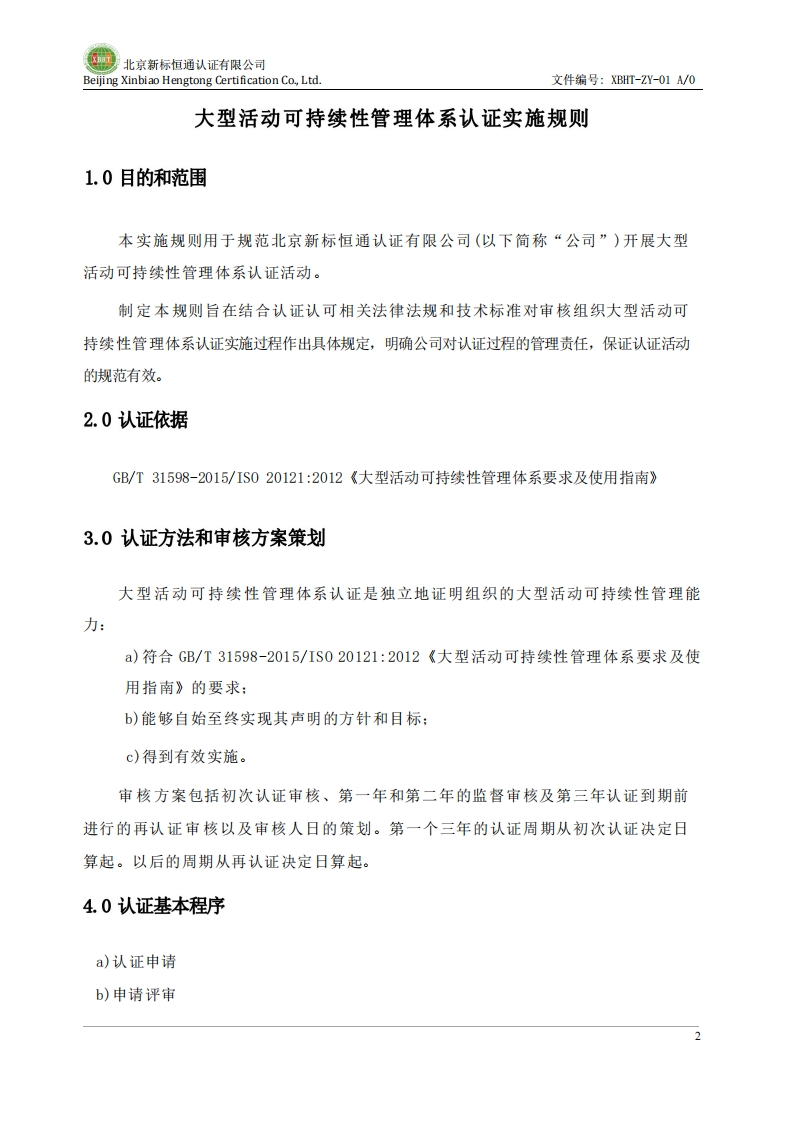 大型活动可持续性管理体系认证实施规则XBHT-GZ-042版本号A_0348072@abc10天前发布关注私信1.25MB51页021大型活动可持续性管理体系认证实施规则XBHT-GZ-042版本号A_0此内容为付费资源,请付费后查看¥23¥36黄金会员免费钻石会员免费立即购买您当前未登录!建议登陆后购买,可保存购买订单付费资源 第1页 / 共51页 第2页 / 共51页 第3页 / 共51页 第4页 / 共51页 第5页 / 共51页 试读已结束,还剩46页,您可下载完整版后进行离线阅读 THE END标准规范 文本预览 北京新标恒通认证有限公司Beijing Xinbiao Hengtong Certification Co.,Ltd.大型活动可持续性管理体系认证实施规则XBHT-GZ-042版本号A/02025年9月1日发布2025年9月1日实施北京新标恒通认证有限公司发布 查看更多 收起部分 喜欢就支持一下吧收藏