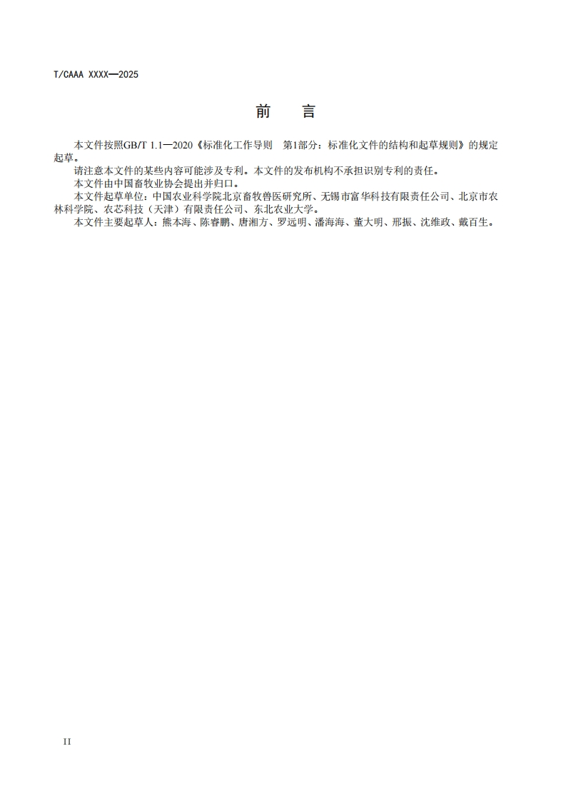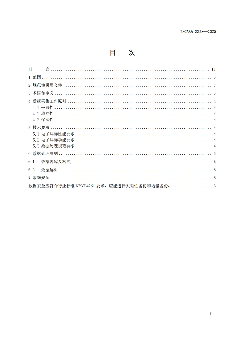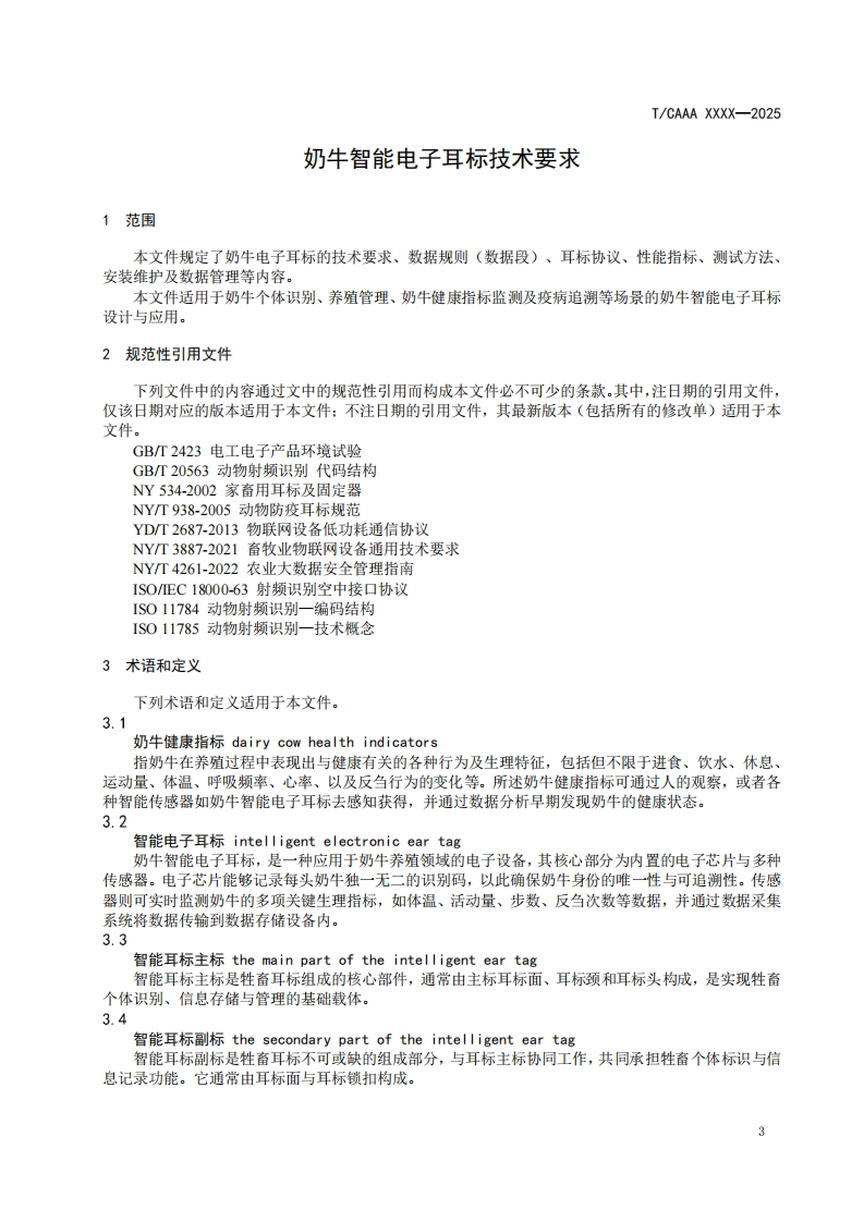 奶牛智能电子耳标技术要求Technicalrequirementsforintelligentelectroniceartagsofdairycows348072@abc9天前发布关注私信0.46MB8页023奶牛智能电子耳标技术要求Technicalrequirementsforintelligentelectroniceartagsofdairycows此内容为付费资源,请付费后查看¥23¥36黄金会员免费钻石会员免费立即购买您当前未登录!建议登陆后购买,可保存购买订单付费资源 第1页 / 共8页 第2页 / 共8页 第3页 / 共8页 第4页 / 共8页 第5页 / 共8页 试读已结束,还剩3页,您可下载完整版后进行离线阅读 THE END标准规范 文本预览 ICS点击此处添加ICS号CCS点击此处添加CCS号TCAAA中国畜牧业协会团体标准T/CAAA XXXX-2025奶牛智能电子耳标技术要求Technical requirements for intelligent electronic ear tags of dairy cows(征求意见稿)2025-Xx-XX发布2025-Xx-XX实施中国畜牧业协会发布 查看更多 收起部分 喜欢就支持一下吧收藏
