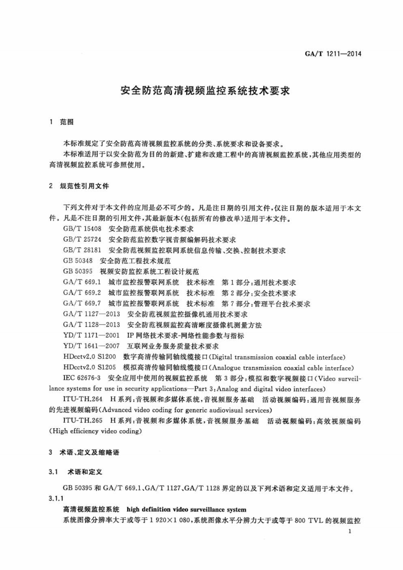 安全防范高清视频监摊_安全防范高清视频监控系统技术要求Technicalrequirementsforhighdefinitionvideosurveillancesysteminsecurityuse348072@abc9天前发布关注私信0.88MB10页034安全防范高清视频监摊_安全防范高清视频监控系统技术要求Technicalrequirementsforhighdefinitionvideosurveillancesysteminsecurityuse此内容为付费资源,请付费后查看¥23¥36黄金会员免费钻石会员免费立即购买您当前未登录!建议登陆后购买,可保存购买订单付费资源 第1页 / 共10页 第2页 / 共10页 第3页 / 共10页 第4页 / 共10页 第5页 / 共10页 试读已结束,还剩5页,您可下载完整版后进行离线阅读 THE END标准规范 文本预览 ICS13.310A91GA中华人民共和国公共安全行业标准GA/T1211-2014安全防范高清视频监控系统技术要求Technical requirements for high definition video surveillancesystem in security use2014-12-16发布2015-04-01实施中华人民共和国公安部发布 查看更多 收起部分 喜欢就支持一下吧收藏