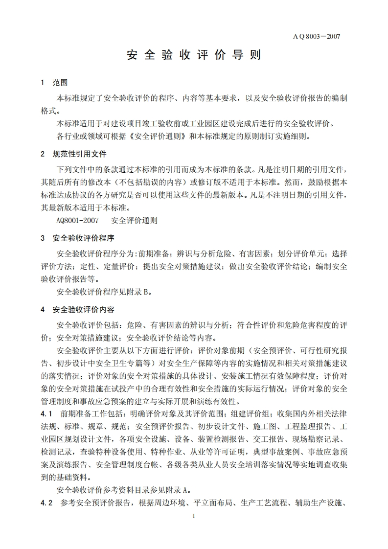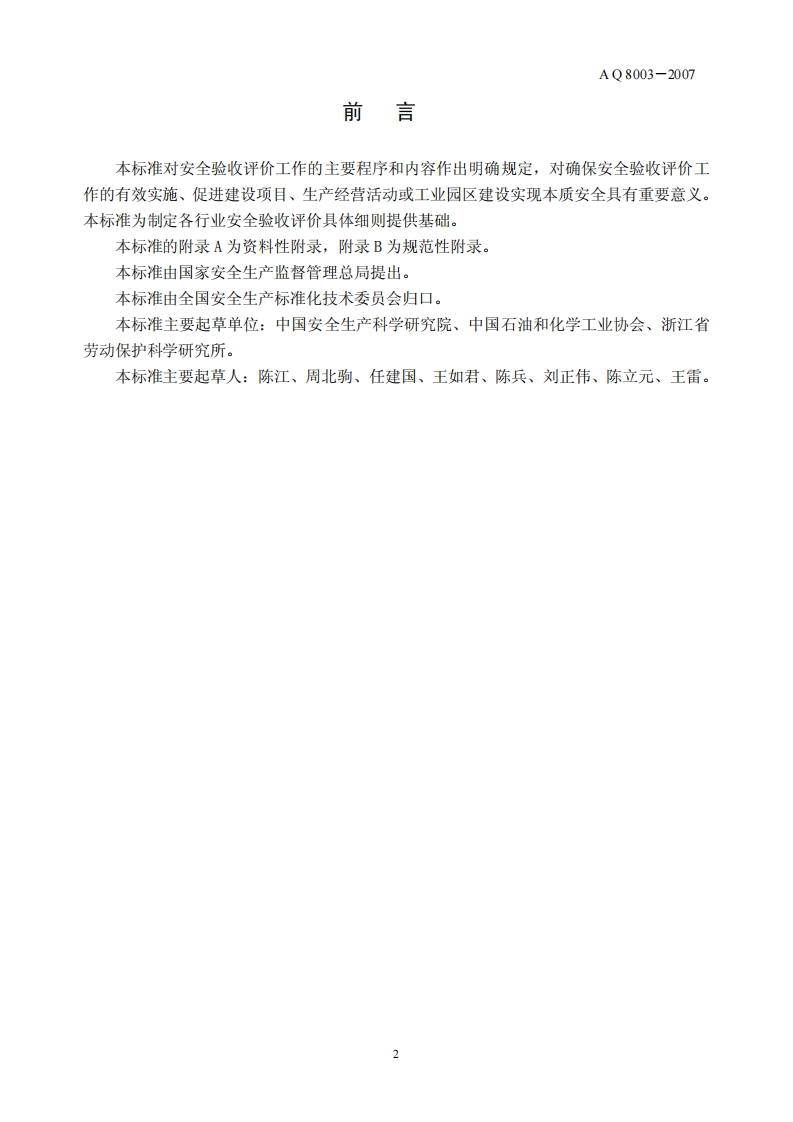 安全验收评价导则Guidelinesforsafetyassessmentuponcompletion348072@abc9天前发布关注私信0.14MB8页035安全验收评价导则Guidelinesforsafetyassessmentuponcompletion此内容为付费资源,请付费后查看¥23¥36黄金会员免费钻石会员免费立即购买您当前未登录!建议登陆后购买,可保存购买订单付费资源 第1页 / 共8页 第2页 / 共8页 第3页 / 共8页 第4页 / 共8页 第5页 / 共8页 试读已结束,还剩3页,您可下载完整版后进行离线阅读 THE END标准规范 文本预览 ICS13.100A09备案号:19429-2007AQ中华人民共和国安全生产行业标准AQ8003-2007安全验收评价导则Guidelines for safety assessment upon completion2007-01-04发布2007-04-01实施国家安全生产监督管理总局发布 查看更多 收起部分 喜欢就支持一下吧收藏