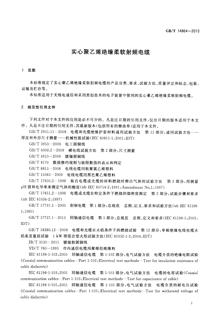 实心聚乙烯绝缘柔软射频电缆Solid-polyetheneinsulatedflexibleradio-frequencycables348072@abc9天前发布关注私信1.48MB40页029实心聚乙烯绝缘柔软射频电缆Solid-polyetheneinsulatedflexibleradio-frequencycables此内容为付费资源,请付费后查看¥23¥36黄金会员免费钻石会员免费立即购买您当前未登录!建议登陆后购买,可保存购买订单付费资源 第1页 / 共40页 第2页 / 共40页 第3页 / 共40页 第4页 / 共40页 第5页 / 共40页 试读已结束,还剩35页,您可下载完整版后进行离线阅读 THE END标准规范 文本预览 1CS33.120.10L26中华人民共和国国家标准GB/T14864-2013代替GB/T14864-1993实心聚乙烯绝缘柔软射频电缆Solid-polyethene insulated flexible radio-frequency cables2013-12-17发布2014-05-15实施中华人民共和国国家质量监督检验检疫总局中国国家标准化管理委员会发布 查看更多 收起部分 喜欢就支持一下吧收藏