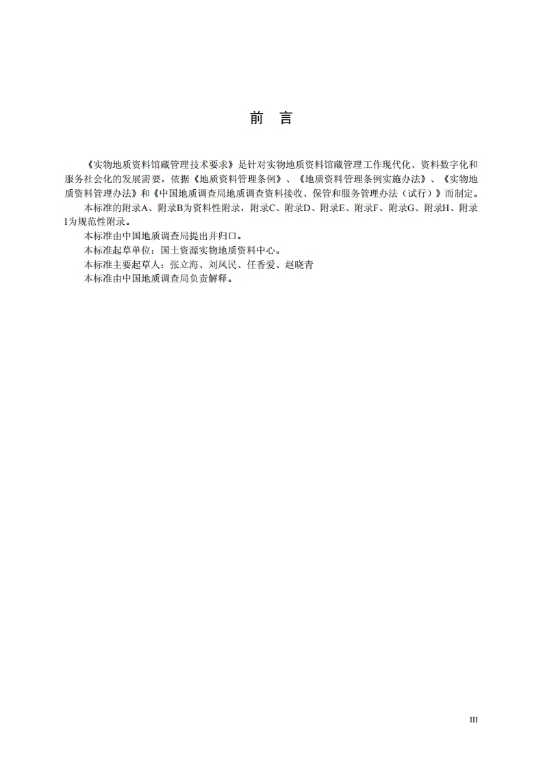 实物地质资料馆藏管理技术要求348072@abc9天前发布关注私信0.61MB46页036实物地质资料馆藏管理技术要求此内容为付费资源,请付费后查看¥23¥36黄金会员免费钻石会员免费立即购买您当前未登录!建议登陆后购买,可保存购买订单付费资源 第1页 / 共46页 第2页 / 共46页 第3页 / 共46页 第4页 / 共46页 第5页 / 共46页 试读已结束,还剩41页,您可下载完整版后进行离线阅读 THE END标准规范 文本预览 中国地质调查局地质调查技术标准DD2010-05实物地质资料馆藏管理技术要求中国地质调查局2010年11月 查看更多 收起部分 喜欢就支持一下吧收藏
