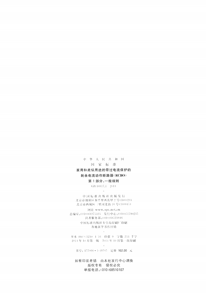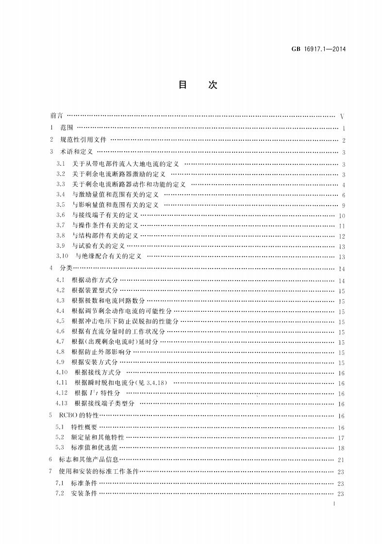 1Cs29.120.50K31中华人民共和国国家标准GB16917.1一2014代替(GB16917.1一2003家用和类似用途的带过电流保护的剩余电流动作断路器(RCBO)第1部分:一般规则Residual current operated circuit-breakers with integral overcurrentprotection for household and similar uses (RCBOs)-Part 1:General rules(IEC61009-1:2012,M()D)2014-05-06发布2015-06-29实施中华人民共和国国家质量监督检验检疫总局中国国家标准化管理委员会发布
