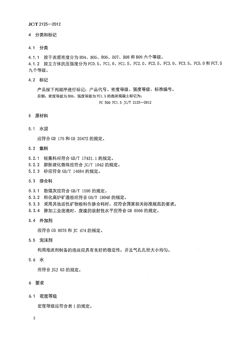 屋面保温隔热用泡沫混凝士Foamedconcreteusedinthermalinsulationroofng2-28发布2013-06-01实施中华人民共和国工业和信息化部发布348072@abc6天前发布关注私信0.23MB10页022屋面保温隔热用泡沫混凝士Foamedconcreteusedinthermalinsulationroofng2-28发布2013-06-01实施中华人民共和国工业和信息化部发布此内容为付费资源,请付费后查看¥23¥36黄金会员免费钻石会员免费立即购买您当前未登录!建议登陆后购买,可保存购买订单付费资源 第1页 / 共10页 第2页 / 共10页 第3页 / 共10页 第4页 / 共10页 第5页 / 共10页 试读已结束,还剩5页,您可下载完整版后进行离线阅读 THE END标准规范 文本预览 ICS91.100.30Q14备案号:38957-2013JC中华人民共和国建材行业标住JC/T2125一2012屋面保温隔热用泡沫混凝土Foamed concrete used in thermal insulation roofing2012-12-28发布2013-06-01实施中华人民共和国工业和信息化部发布 查看更多 收起部分 喜欢就支持一下吧收藏