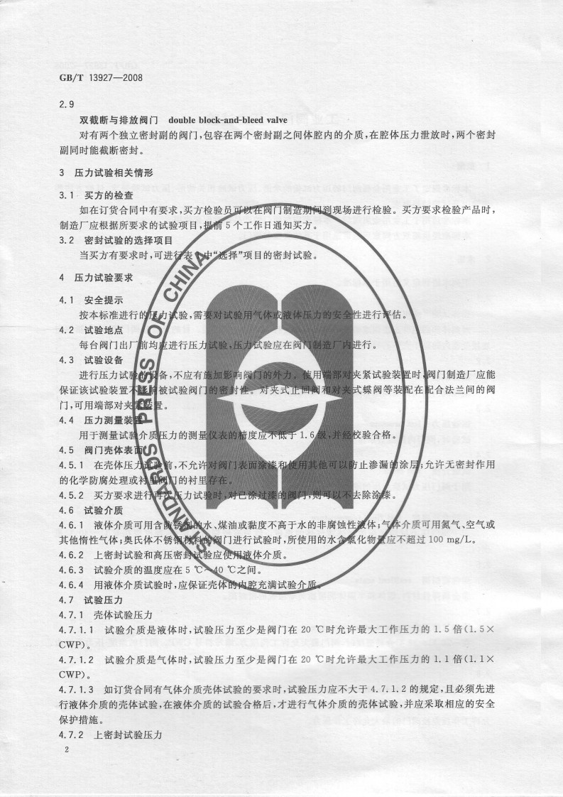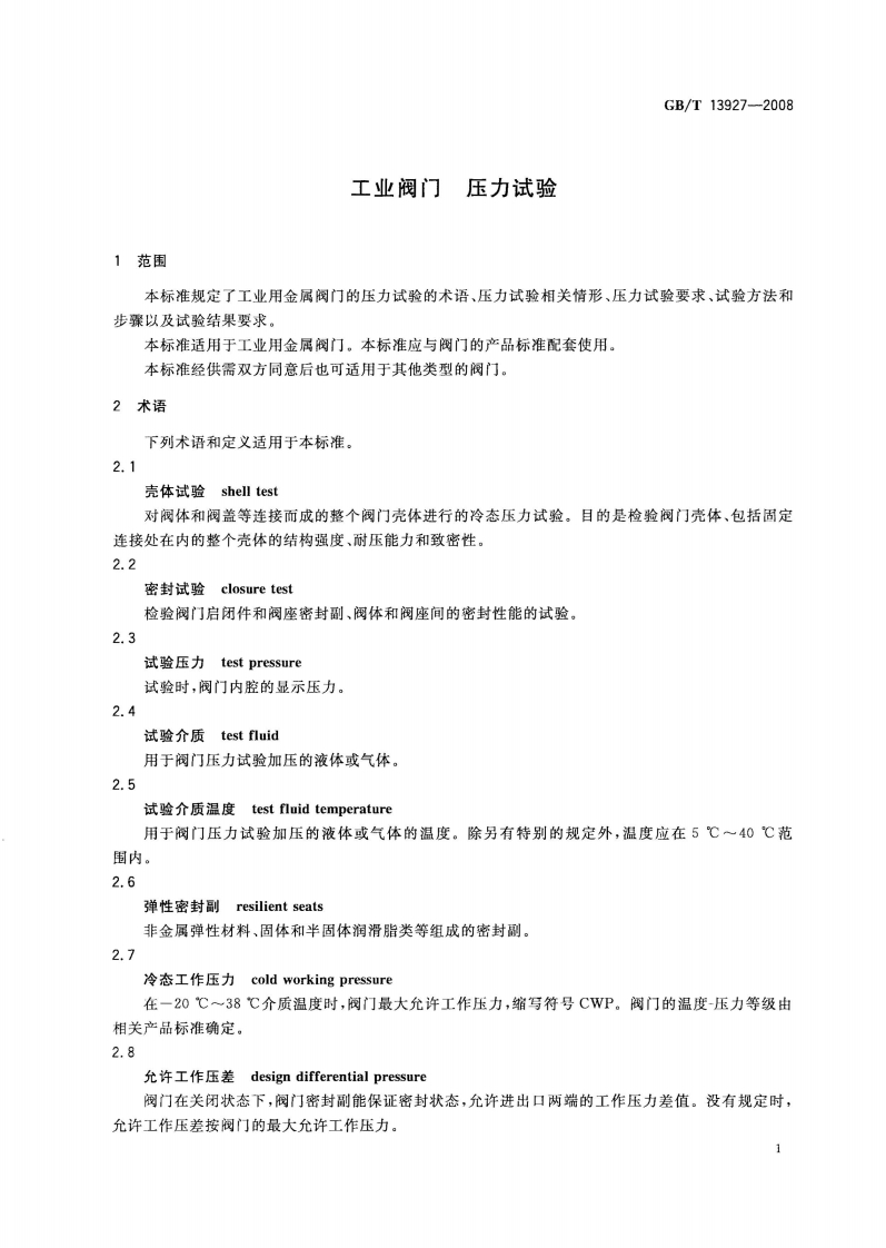 工业阀门压力试验Industrialvalves-Pressuretesting348072@abc6天前发布关注私信3.46MB13页043工业阀门压力试验Industrialvalves-Pressuretesting此内容为付费资源,请付费后查看¥23¥36黄金会员免费钻石会员免费立即购买您当前未登录!建议登陆后购买,可保存购买订单付费资源 第1页 / 共13页 第2页 / 共13页 第3页 / 共13页 第4页 / 共13页 第5页 / 共13页 试读已结束,还剩8页,您可下载完整版后进行离线阅读 THE END标准规范 文本预览 ICS23.060.01J16GB中华人民共和国国家标准GB/T13927-2008代替GB/T13927-1992工业阀门压力试验Industrial valves-Pressure testing2008-12-23发布2009-07-01实施中华人民共和国国家质量监督检验检疫总局中国国家标准化管理委员会发布 查看更多 收起部分 喜欢就支持一下吧收藏