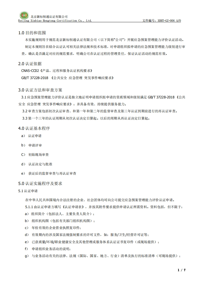 应急预案管理能力评价认证实施规则XBHT-GZ-032A_0348072@abc5天前发布关注私信0.16MB8页031应急预案管理能力评价认证实施规则XBHT-GZ-032A_0此内容为付费资源,请付费后查看¥23¥36黄金会员免费钻石会员免费立即购买您当前未登录!建议登陆后购买,可保存购买订单付费资源 第1页 / 共8页 第2页 / 共8页 第3页 / 共8页 第4页 / 共8页 第5页 / 共8页 试读已结束,还剩3页,您可下载完整版后进行离线阅读 THE END标准规范 文本预览 北京新标恒通认证有限公司Beijing Xinbiao Hengtong Certification Co.,Ltd.文件编号:XBHT-GZ-006A/0应急预案管理能力评价认证实施规则XBHT-GZ-032 A/02023年12月25日发布2023年12月25日实施北京新标恒通认证有限公司发布 查看更多 收起部分 喜欢就支持一下吧收藏