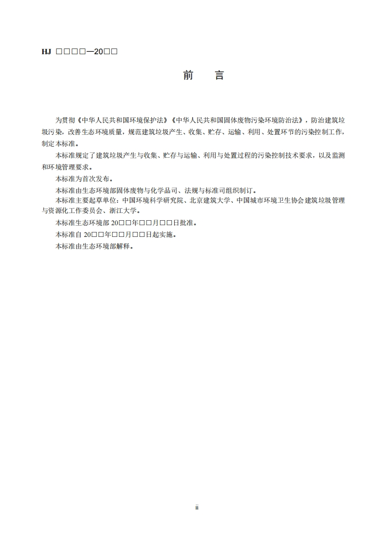 建筑垃圾污染控制技术规范Technicalspecificationforpollutioncontrolofconstructionanddemolitionwastes348072@abc4天前发布关注私信0.24MB10页048建筑垃圾污染控制技术规范Technicalspecificationforpollutioncontrolofconstructionanddemolitionwastes此内容为付费资源,请付费后查看¥23¥36黄金会员免费钻石会员免费立即购买您当前未登录!建议登陆后购买,可保存购买订单付费资源 第1页 / 共10页 第2页 / 共10页 第3页 / 共10页 第4页 / 共10页 第5页 / 共10页 试读已结束,还剩5页,您可下载完整版后进行离线阅读 THE END标准规范 文本预览 附件2HJ中华人民共和国国家生态环境标准HⅢ▣▣▣▣一20▣▣建筑垃圾污染控制技术规范Technical specification for pollution control of construction and demolitionwastes(征求意见稿)20口口-▣口-口口发布20口口-口口-口口实施生不境部发布 查看更多 收起部分 喜欢就支持一下吧收藏