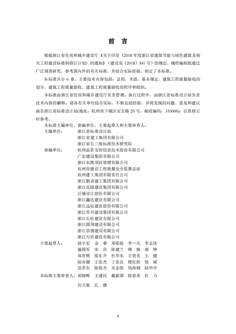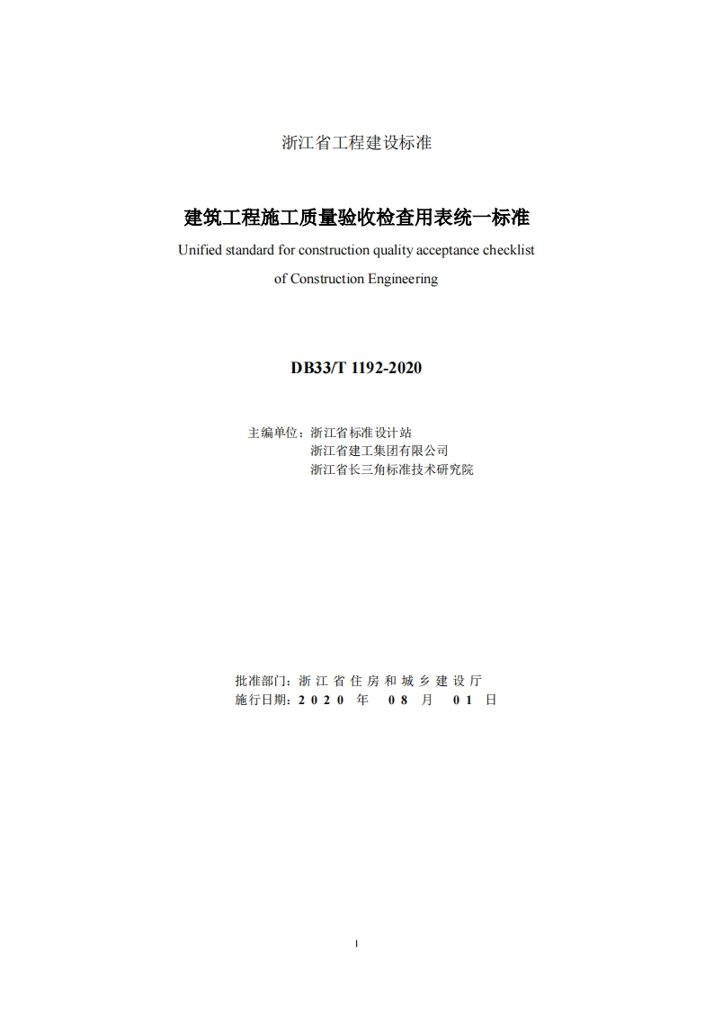 建筑工程施工质量验收检查用表统一标准UnifiedstandardforconstructionqualityacceptancechecklistofConstructionEngineering发布稿)348072@abc3天前发布关注私信1.15MB49页046建筑工程施工质量验收检查用表统一标准UnifiedstandardforconstructionqualityacceptancechecklistofConstructionEngineering发布稿)此内容为付费资源,请付费后查看¥23¥36黄金会员免费钻石会员免费立即购买您当前未登录!建议登陆后购买,可保存购买订单付费资源 第1页 / 共49页 第2页 / 共49页 第3页 / 共49页 第4页 / 共49页 第5页 / 共49页 试读已结束,还剩44页,您可下载完整版后进行离线阅读 THE END标准规范 文本预览 备案号:正在报建设部备案中DB浙江省工程建设标准DB33/T1192-2020建筑工程施工质量验收检查用表统一标准Unified standard for construction quality acceptance checklistof Construction Engineering(发布稿)2020-03-05发布2020-08-01实施浙江省住房和城乡建设厅发布 查看更多 收起部分 喜欢就支持一下吧收藏