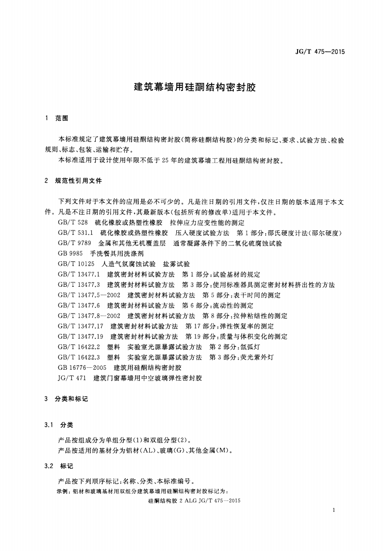 建筑慕墙用硅酮结构密封胶Structuralsiliconsealantsforbuildingcurtainwal348072@abc4天前发布关注私信1.07MB26页041建筑慕墙用硅酮结构密封胶Structuralsiliconsealantsforbuildingcurtainwal此内容为付费资源,请付费后查看¥23¥36黄金会员免费钻石会员免费立即购买您当前未登录!建议登陆后购买,可保存购买订单付费资源 第1页 / 共26页 第2页 / 共26页 第3页 / 共26页 第4页 / 共26页 第5页 / 共26页 试读已结束,还剩21页,您可下载完整版后进行离线阅读 THE END标准规范 文本预览 ICS91.220P96G中华人民共和国建筑工业行业标准JG/T475-2015建筑幕墙用硅酮结构密封胶Structural silicon sealants for building curtain wall2015-11-23发布2016-04-01实施中华人民共和国住房和城乡建设部发布 查看更多 收起部分 喜欢就支持一下吧收藏