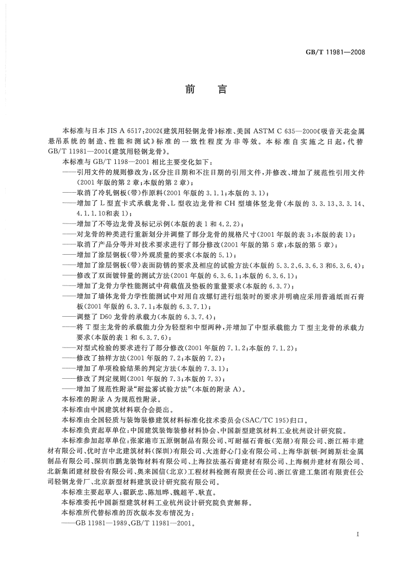 建筑用轻钢龙骨Steelfurringforbuilding348072@abc5天前发布关注私信2.66MB19页025建筑用轻钢龙骨Steelfurringforbuilding此内容为付费资源,请付费后查看¥23¥36黄金会员免费钻石会员免费立即购买您当前未登录!建议登陆后购买,可保存购买订单付费资源 第1页 / 共19页 第2页 / 共19页 第3页 / 共19页 第4页 / 共19页 第5页 / 共19页 试读已结束,还剩14页,您可下载完整版后进行离线阅读 THE END标准规范 文本预览 1CS91.060Q73GB中华人民共和国国家标准GB/T11981-2008代替GB/T11981-2001建筑用轻钢龙骨Steel furring for building2008-01-09发布2008-08-01实施中华人民共和国国家质量监督检验检疫总局中国国家标准化管理委员会发布数码防伪 查看更多 收起部分 喜欢就支持一下吧收藏
