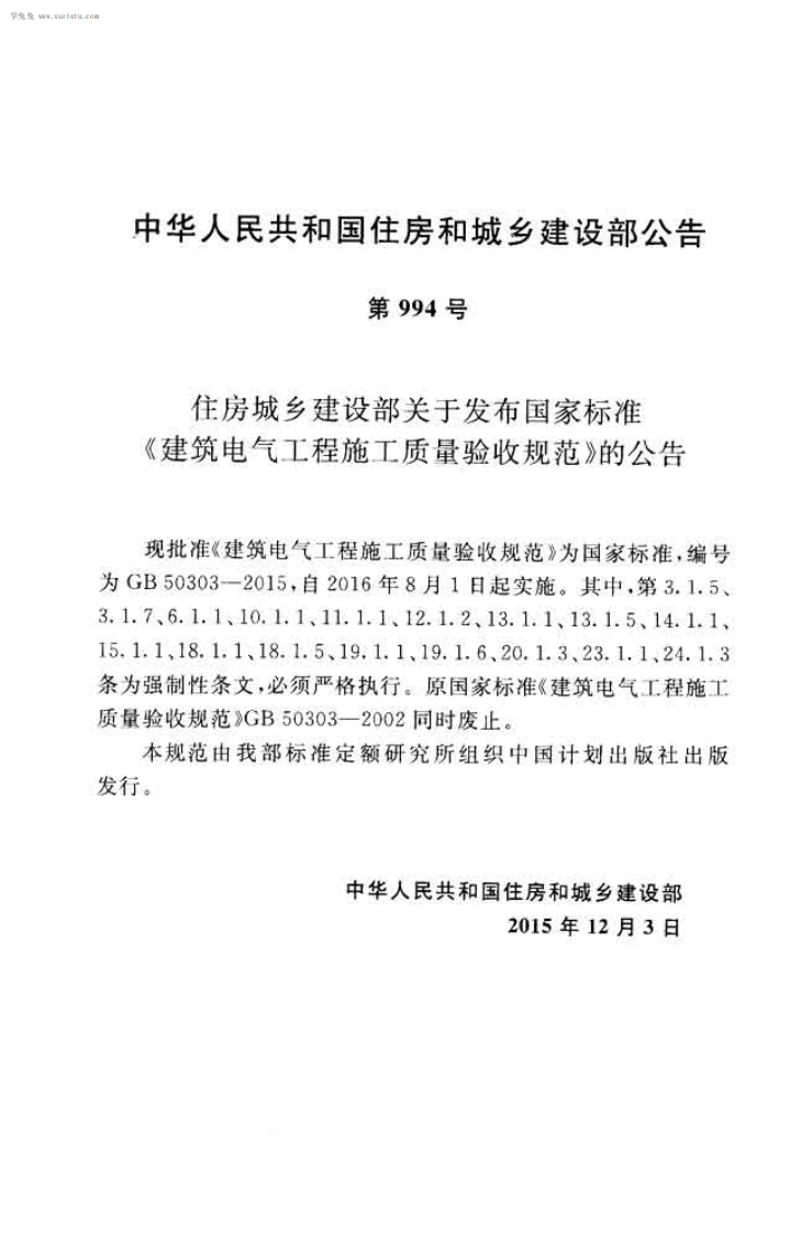 建筑电气工程施工质量验收规Codeforacceptanceofconstructionqualityofbuildingelectricalengineering_建筑电气工程施工质量验收规范Codeforacceptanceofconstructionqualityofbuildingelectricalengineering348072@abc5天前发布关注私信12.60MB201页031建筑电气工程施工质量验收规Codeforacceptanceofconstructionqualityofbuildingelectricalengineering_建筑电气工程施工质量验收规范Codeforacceptanceofconstructionqualityofbuildingelectricalengineering此内容为付费资源,请付费后查看¥23¥36黄金会员免费钻石会员免费立即购买您当前未登录!建议登陆后购买,可保存购买订单付费资源 第1页 / 共201页 第2页 / 共201页 第3页 / 共201页 第4页 / 共201页 第5页 / 共201页 试读已结束,还剩196页,您可下载完整版后进行离线阅读 THE END标准规范 文本预览 UDC中华人民共和国国家标准PGB50303-2015建筑电气工程施工质量验收规范Code for acceptance of construction qualityof building electrical engineering2015-12-03发布2016-08-01实施中华人民共和国住房和城乡建设部中华人民共和国国家质量监督检验检疫总局联合发布 查看更多 收起部分 喜欢就支持一下吧收藏