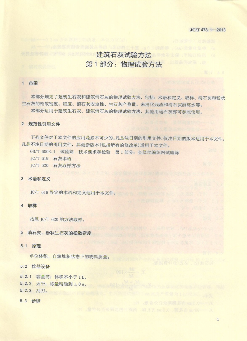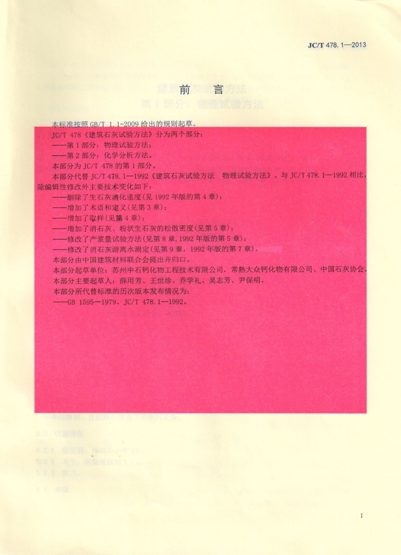 ICS91.100.10Q10备案号:40979-2013JC中华人民共和国建材行业标住JC/T478.1-2013代替JC/T478.1一1992建筑石灰试验方法第1部分:物理试验方法Standard test methods for building lime-Part 1:Methods for phisical testing中铁十局集团入公司验夏试验中心受控文件编号:40持有人:2013-04-25发布2013-09-01实施中华人民共和国工业和信息化部发布