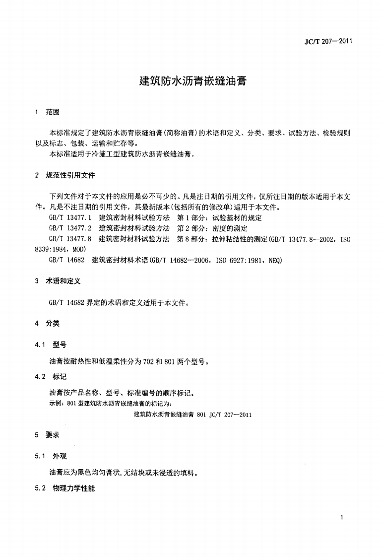 建筑防水沥青嵌缝油膏Asphaltcaulksforbuildingwaterproofing348072@abc6天前发布关注私信0.43MB9页048建筑防水沥青嵌缝油膏Asphaltcaulksforbuildingwaterproofing此内容为付费资源,请付费后查看¥23¥36黄金会员免费钻石会员免费立即购买您当前未登录!建议登陆后购买,可保存购买订单付费资源 第1页 / 共9页 第2页 / 共9页 第3页 / 共9页 第4页 / 共9页 第5页 / 共9页 试读已结束,还剩4页,您可下载完整版后进行离线阅读 THE END标准规范 文本预览 ICS91.100.50Q24备案号:34426-2012JC中华人民共和国建材行业标准JC/T207—2011"代替JC/T207一1996建筑防水沥青嵌缝油膏Asphalt caulks for building waterproofing2011-12-20发布2012-07-01实施中华人民共和国工业和信息化部发布 查看更多 收起部分 喜欢就支持一下吧收藏